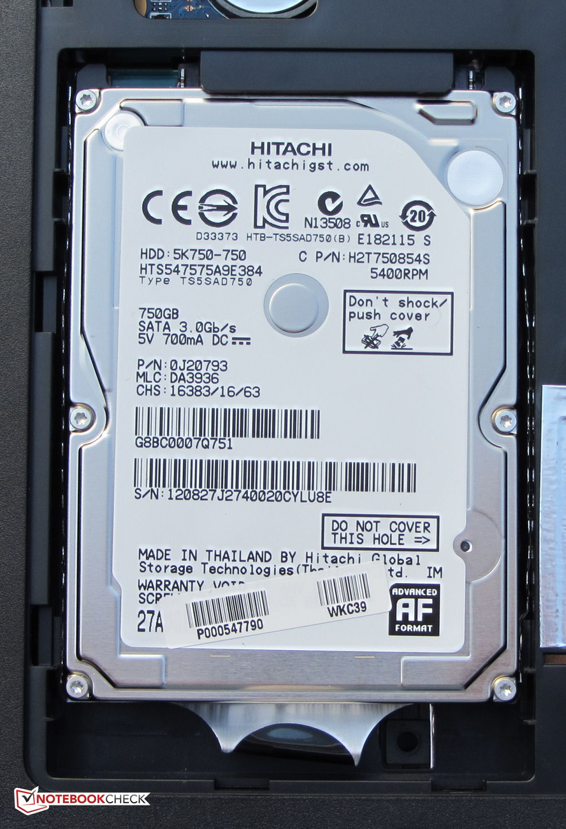 In unserem Test-Rechner steckt eine Festplatte aus Hitachis Travelstar 5K750-Serie. Die Platte arbeitet mit einer Geschwindigkeit von 5.400 Umdrehungen pro Minute und bietet eine Speicherkapazität von 750 GB. Somit steht viel Platz zur Speicherung von unzähligen Bildern, Musikstücken oder sonstigen Dateien bereit. Zu den schnellen Modellen zählt die Travelstar-Festplatte nicht. CrystalDiskMark meldet eine Lesegeschwindigkeit von 89,96 MB/s. HD Tune liefert eine durchschnittliche Transferrate von 67,5 MB/s. Beide Werte siedeln die Platte im unteren Mittelfeld für 5.400er-Festplatten an.