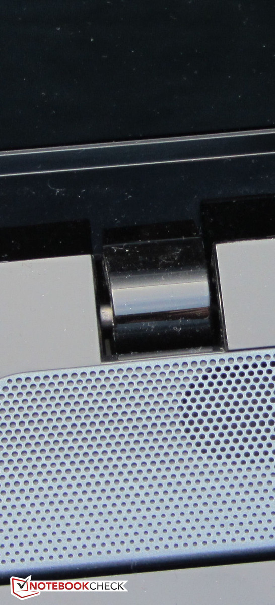 Die Baseunit gibt auf Druck größtenteils nicht nach. Lediglich am linken Rand oberhalb des DVD-Brenners kann man die Baseunit etwas durchdrücken. Die Handballenablage zeigt sich dank der Metalloberfläche sehr widerstandsfähig gegenüber Druck. Die Verwindungssteifigkeit der Baseunit dürfte besser ausfallen. Sie lässt sich zu leicht und zu stark verwinden. Der Deckel erweist sich in dieser Beziehung als etwas stabiler. Die Deckelrückseite lässt sich nicht eindrücken. Die Scharniere halten den Deckel stabil in Position, wippen aber stark nach. Eine Ein-Hand-Öffnung des Deckels ist nicht möglich.