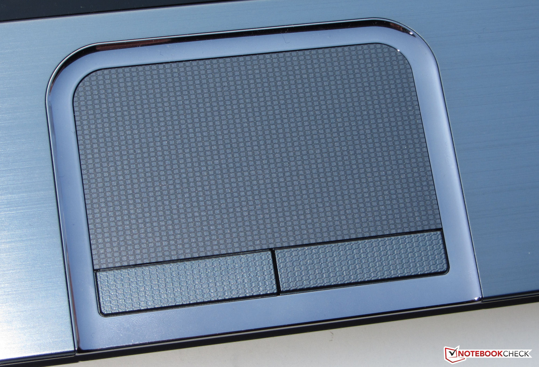 Das multitouchfähige Synaptics-Touchpad besitzt die Ausmaße 9,6 x 5,6 cm. Die glatte Oberfläche des Pads behindert den Finger nicht beim Gleiten. Sie ist mit einem Muster versehen, das die Oberfläche aussehen lässt, als sei diese genoppt. Mit diesem Muster passt das Pad optisch zu den Maustasten, die eine entsprechend genoppte Oberfläche besitzen. Die verschiedenen Multitouchgesten können individuell im Konfigurationsmenü des Touchpads ein- und ausgeschaltet werden. Nicht alle Gesten sind standardmäßig aktiviert - so beispielsweise die Bildlauffunktion. Die beiden Maustasten verfügen über einen kurzen Hub und einen klar hör- und fühlbaren Druckpunkt.