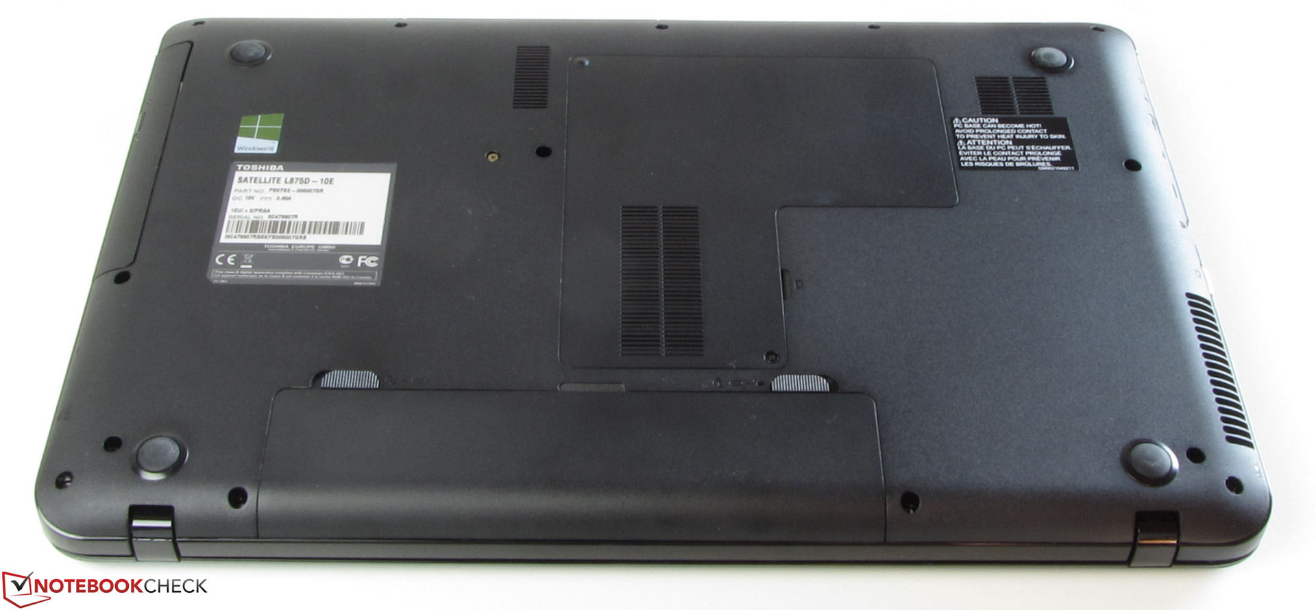 Das Gehäuse des Satellite L875D besteht überwiegend aus Kunststoff. Toshiba setzt aber auch Metallelemente ein. So bestehen die Handballenablage, die Lautsprecherabdeckung und die Rückseite des Deckels aus gebürstetem Aluminium. Die Farbe dieser Aluminiumelemente nennt sich Eisblau. Der Displayrahmen sowie der restliche Bereich der Oberseite der Baseunit sind aus glänzendem, schwarzen Kunststoff gefertigt. Sony und Packard Bell setzen bei Ihren Rechnern komplett auf Kunststoffgehäuse.