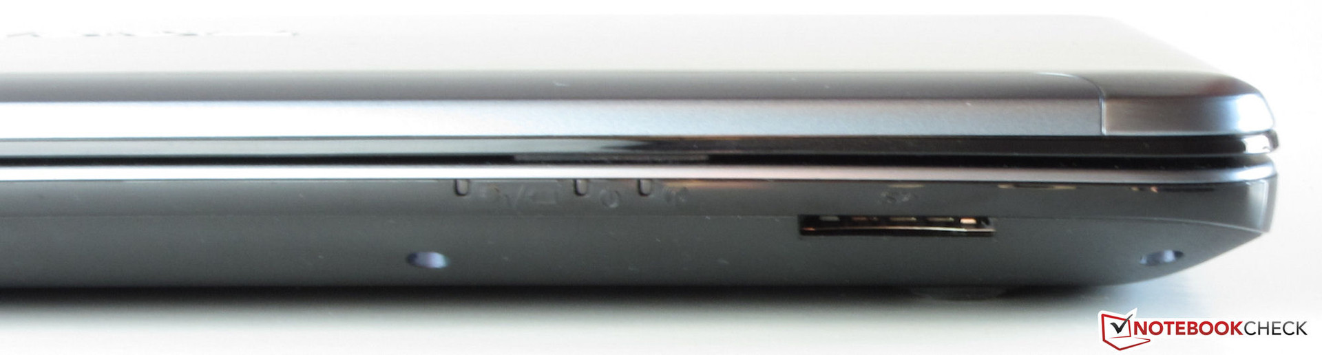 Das Satellite L875D ist mit den üblichen Schnittstellen ausgestattet, die man heutzutage an den meisten Notebooks vorfindet. Unterschiede zwischen den drei Vergleichsgeräten existieren praktisch nicht. Das Sony Vaio besitzt als einziges der drei Geräte vier USB-Steckplätze (die anderen beiden Rechner jeweils drei). Gut: Alle drei Notebooks verfügen über mindestens einen USB 3.0-Steckplatz. Die Schnittstellen des L875D sitzen überwiegend im vorderen Bereich der rechten Seite und sind somit ungünstig platziert, sprich können bei Belegung neben der Nutzung einer externen Maus stören (Rechtshänder).