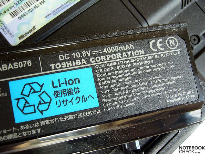 Wie auch viele andere Toshiba Satellite Notebooks und auch das Tecra A7, ist auch das M100 mit einem Standard 4000mAh Akku ausgestattet. Weil die Komponenten des M100 einiges an Energie fordern, ist es nicht möglich eine längere Zeit ohne Netz-Strom zu arbeiten. Daher ist die Mobilität des Satellite M100s (max. 2h Akkulaufzeit) deutlich eingeschränkt.