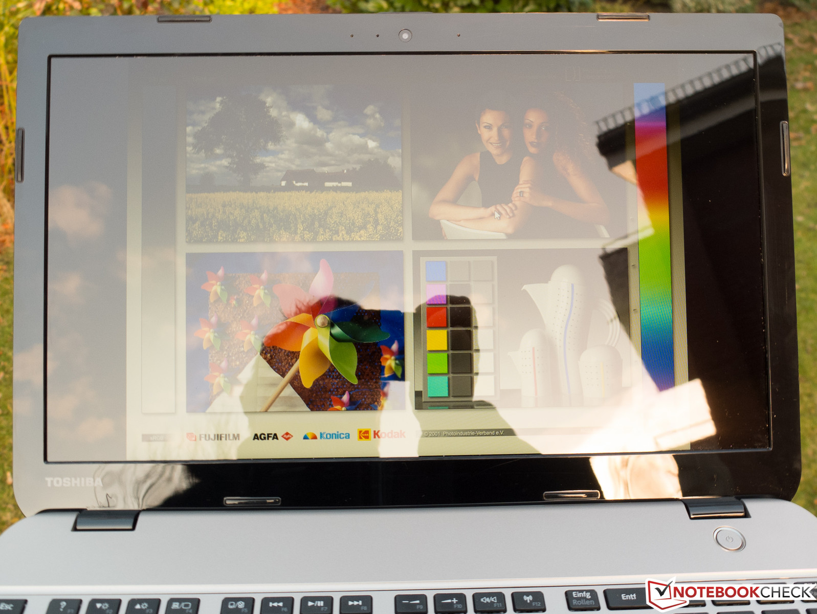 TN-Panels erreichen typbedingt niemals eine so hohe Blickwinkelstabilität wie etwa solche auf IPS-Basis, was ein Grund dafür ist, dass sie in mobilen Gadgets wie Smartphones und Tablets – wenn überhaupt – nur am untersten Ende der Preisskala verbaut werden. Nun hat es bei den TN-Panels in den letzten Jahren durchaus Fortschritte gegeben, die allerdings an unserem Kandidaten vorbeigegangen sein müssen. So haben wir schon einige Displays bei ähnlich günstigen Notebooks gesichtet, die gerade bei seitlichen Einblickwinkeln weniger mit Farbverfälschungen und abnehmender Helligkeit zu kämpfen hatten als das des Toshibas. Besonders ausgeprägt und früh tritt der Invertierungseffekt auf, der sich bei allen TN-Panels einstellt, sobald man von unten darauf schaut.