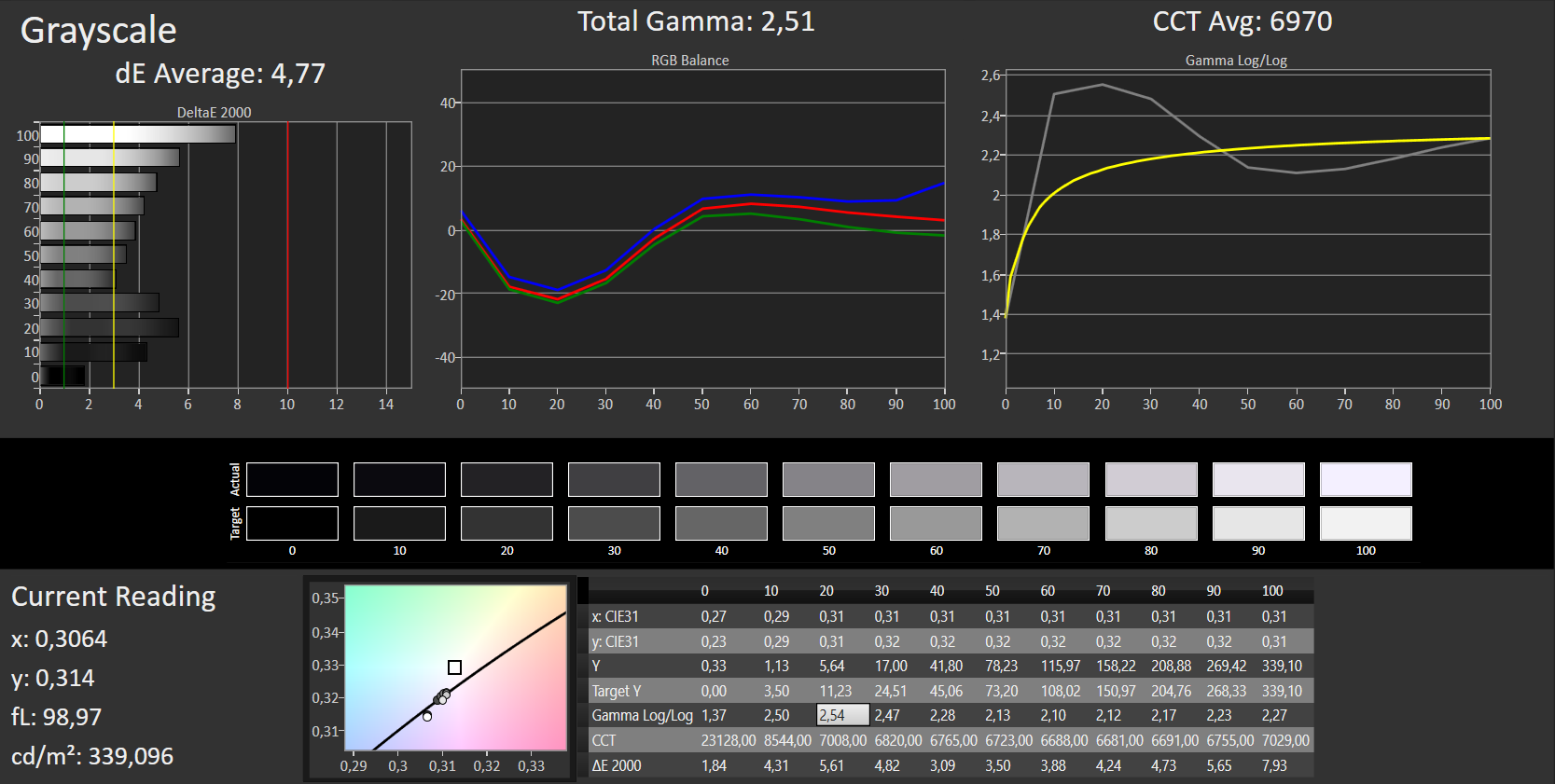 ΔE Greyscale Calman: 4.77 | ∀{0.09-98 Ø5}