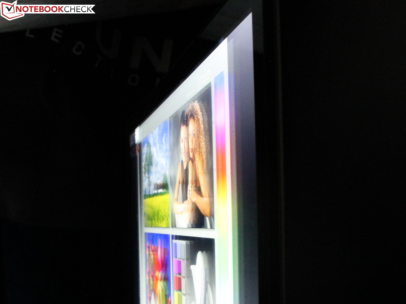 Das IPS-Panel wird im Auslieferungszustand bereits durch ein Farbprofil aufgehübscht (Technicolor), was markant gute Farbwiedergaben mit sich bringt. Bei DeltaE2000-Werten von 1,6 oder 2,4 erübrigt sich die heimische Kalibrierung. CalMAN ermittelt, dass die sRGB-Farben zwar nicht vollständig (92 % Abdeckung) (Korrektur 20.5.2015 zufolge fehlerhaften Referenz-sRGB-Profils) aber naturgetreu angezeigt werden. Dies bot in dieser Perfektion unter den Konkurrenten nur das MSI GS60. Gleichauf mit Dells XPS 15 ist der Kontrast ein Spitzenreiter: 1.400:1 sehen wir selten, was auf einem Schwarzwert von 0,18 beruht.