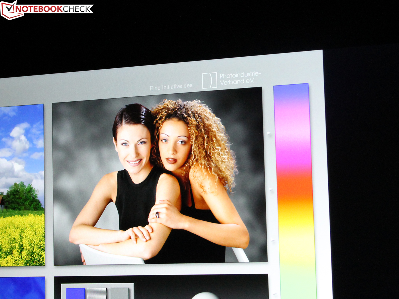 Mit Chroma Tune kann einfach zwischen den Farbprofilen gewechselt werden, etwa wenn für eine Anwendung kühle Farben besser erscheinen. Mehr als bei unserem Testgerät kann ein Notebook-Display in Bezug auf Farben nicht leisten. Im Umfeld der Workstations gäbe es noch sog. Dreamcolor-Displays, welche AdobeRGB fast und sRGB vollständig abdecken. Siehe z. B. HP ZBook 17 (E9X11AA-ABA), das mit mattem FHD aufwartet (Display Rating 92 %).