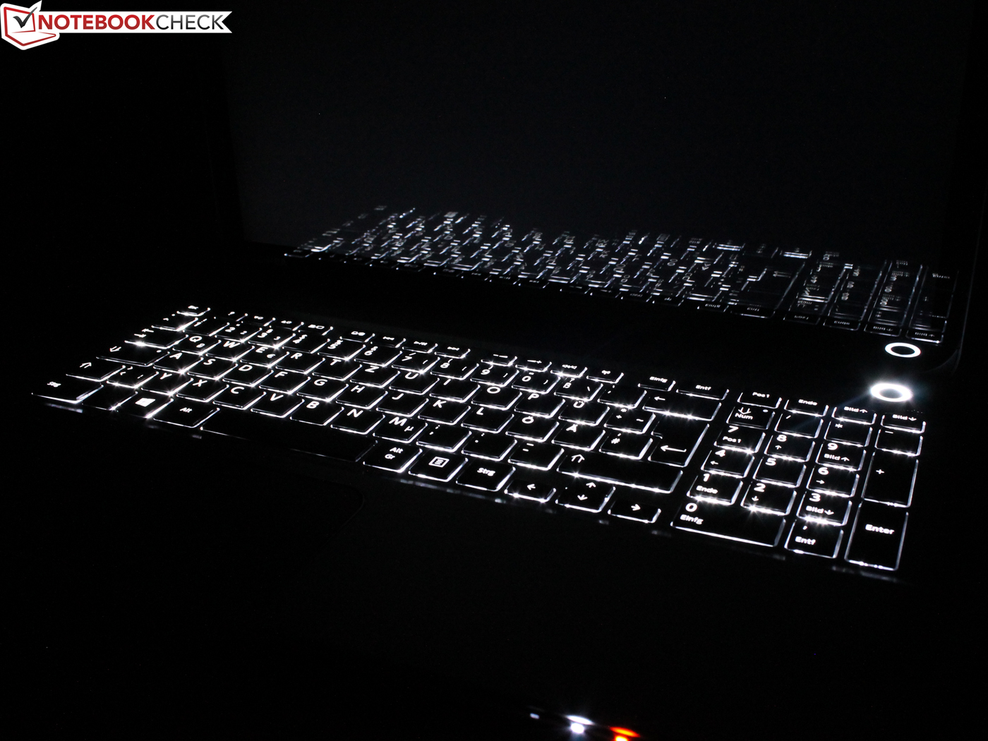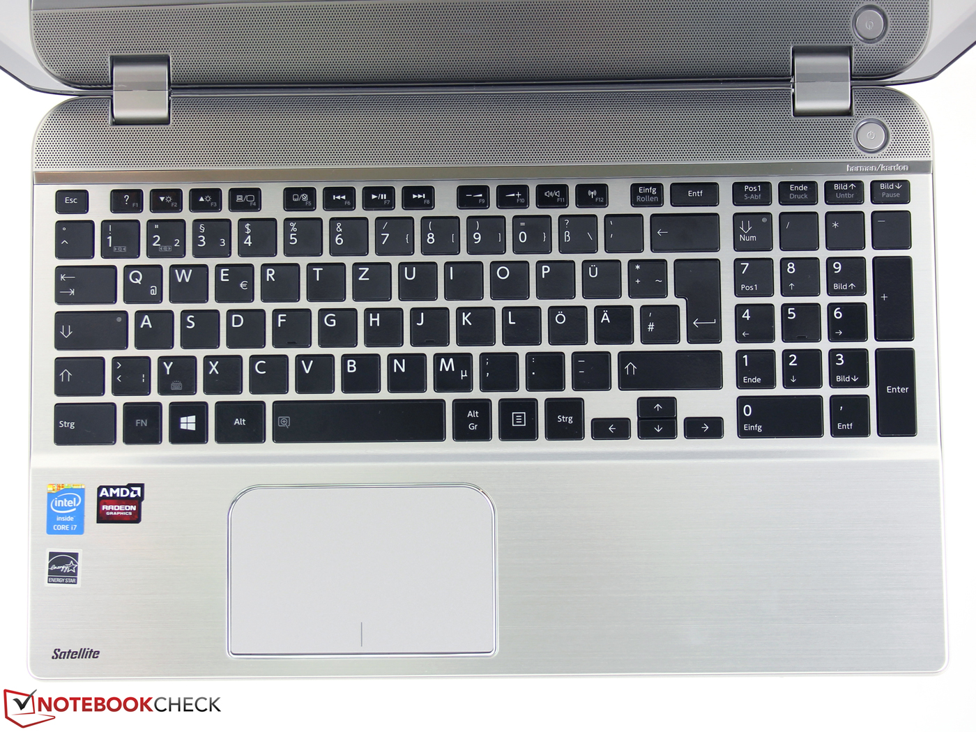Die Tastatur hat sich seit dem Satellite P50 von Ende 2013 scheinbar nicht verändert. Das Layout nutzt die komplette Breite des 15-Zollers aus und besitzt einen vollwertigen Ziffernblock mit großen Tasten. Toshiba hat den Unterbau optimiert, weshalb uns beim P50t nicht mehr ein weicher, federnder Anschlag begegnet. Der Anschlag ist fest, aber nicht hart. Die glatten Tasten sind für die Finger ziemlich rutschig, was beim schnellen Tippen aber eher ein Vorteil ist. Das Tipp-Geräusch ist sehr leise und der knackige Druckpunkt gibt ein markantes Feedback. Dadurch entsteht bei einem mittleren Hubweg ein angenehm deutliches Feedback, das mechanischen Tastaturen nur auf Grund des knappen Hubs nicht nahe kommt.
