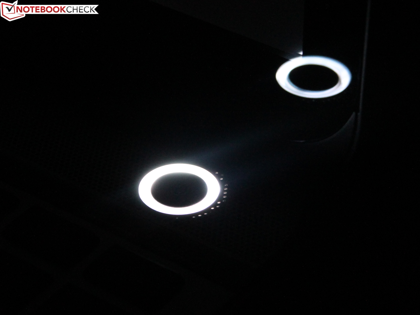 Die Temperatur bei geringer bis fehlender Betriebsamkeit ist niedrig, gerade mal knapp 33 Grad messen wir am wärmsten Punkt, der Durchschnitt auf der Oberseite ist mit 28 Grad nicht einmal handwarm. Bei Last erwärmt sich der Hotspot auf angemessene 43 Grad, nur geringfügig mehr als handwarm. Die GPU-Boliden unter den Konkurrenten halten an dieser Stelle die rote Laterne: Das MSI GS60 wird oben bis zu 50 Grad warm (unten 78 Grad!), das Y50 zeigt 59 Grad an (oben 61 Grad).