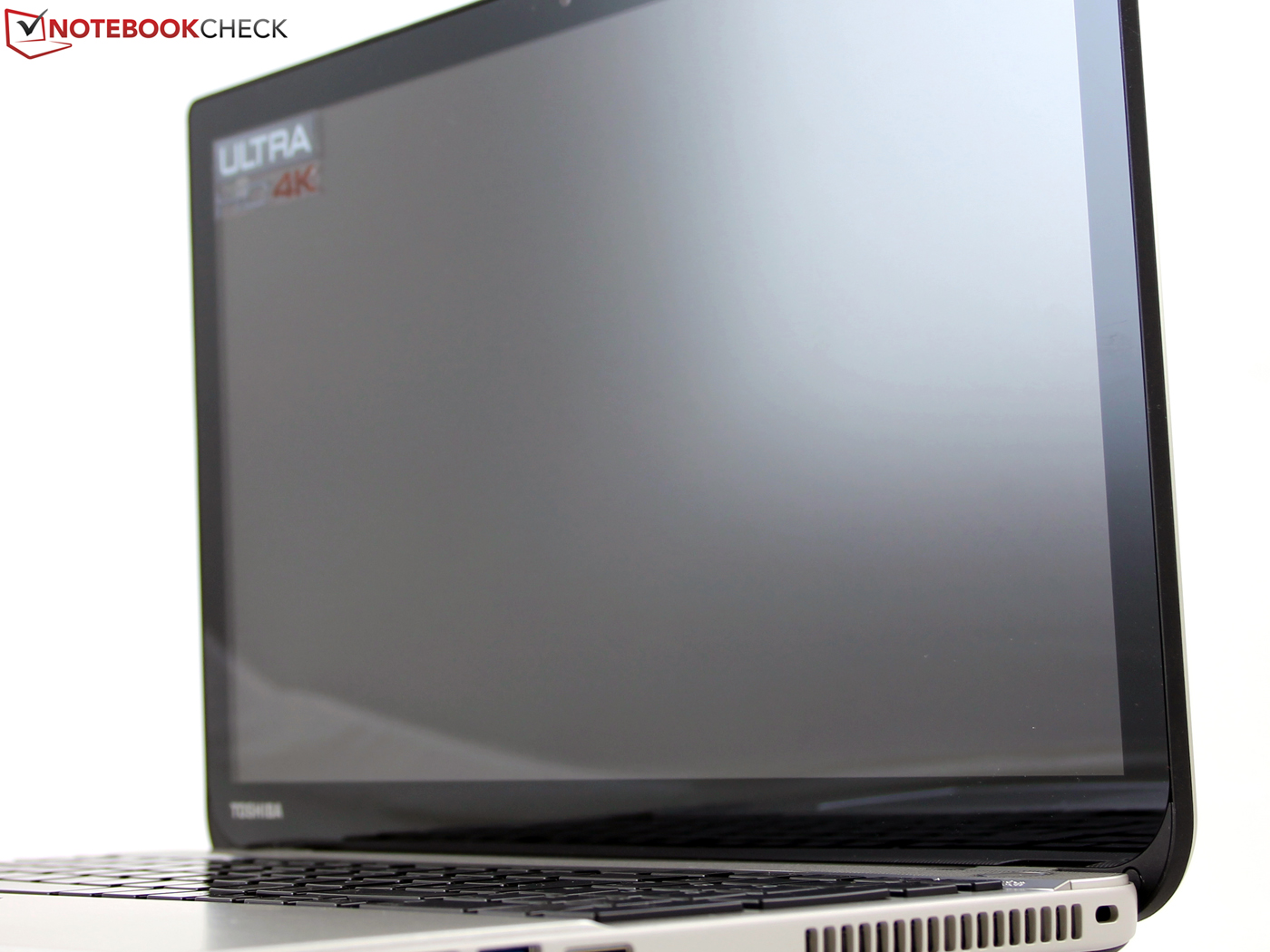 Toshiba rüstet den 15,6-Zoller mit einem markanten 16:9 Panel aus: 3.840 x 2.160 Pixel (LQ156D1JX01) bringen die so genannte 4K-Auflösung auf den Desktop (Pixeldichte 282 ppi). Das Panel ist daneben noch ein kapazitives 10-Finger-Touchdisplay. Der Hersteller spricht von „Hochhelligkeits-Touch-Display“, was unsere Messung aber nicht bestätigt. Der Durchschnitt von 248 cd/m² ist keine Luminanz-Oberklasse, hier sind die Konkurrenten kräftiger aufgestellt (siehe Tabelle). Die Helligkeit ist gleichmäßig über die Anzeige verteilt, Screen Bleeding können wir selbst bei Schwarzbild und höchster Helligkeit nur marginal an den Rändern erkennen (Foto rechte Spalte). Die Variante P50t ist nur mit dem 4K-Touchpanel zu haben. Die Modelle P50-B gibt es schon für knapp 1.000 Euro mit 1.920 x 1.080 Pixeln (Glare, IPS, Radeon R9 M265X).