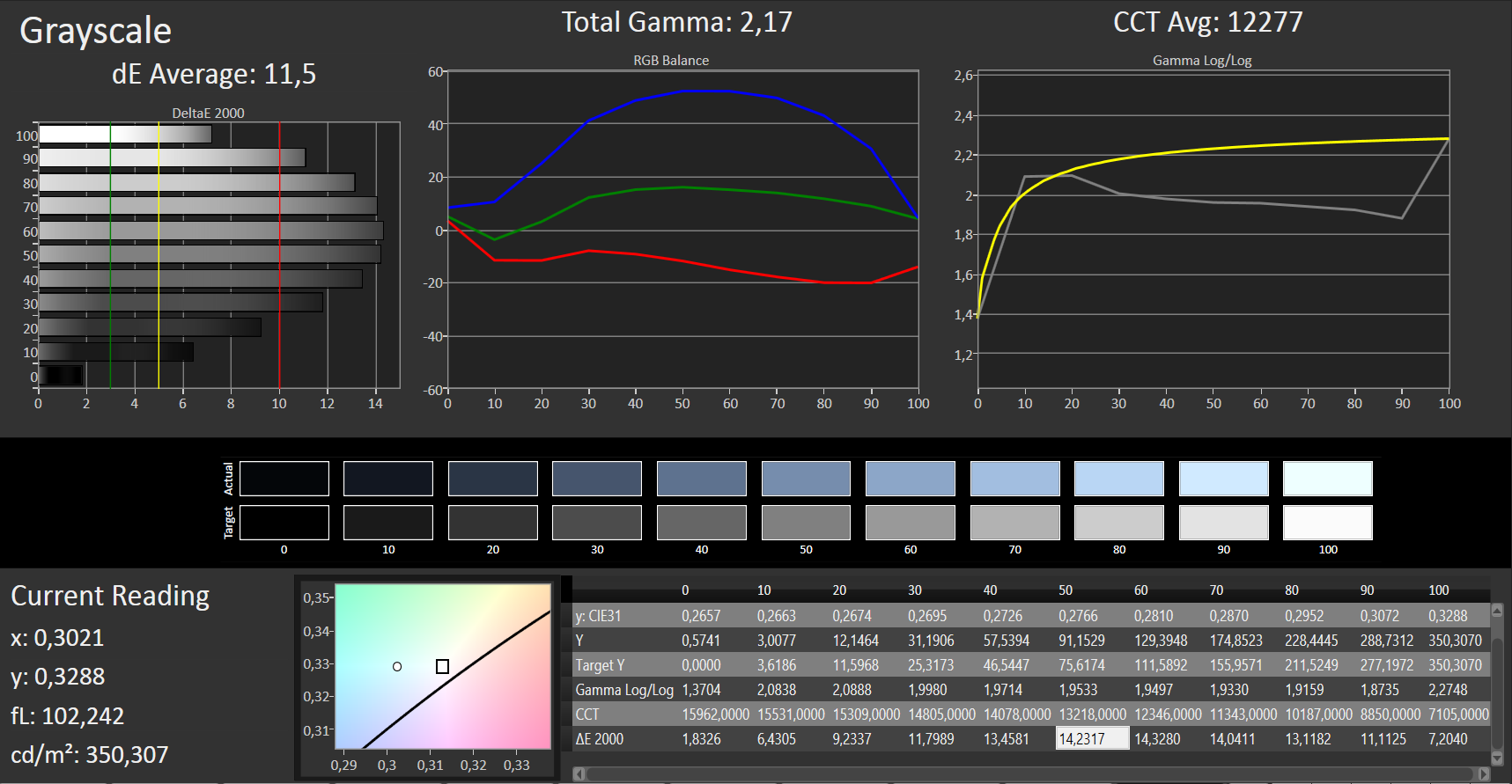 ΔE Greyscale Calman: 11.5 | ∀{0.09-98 Ø5}