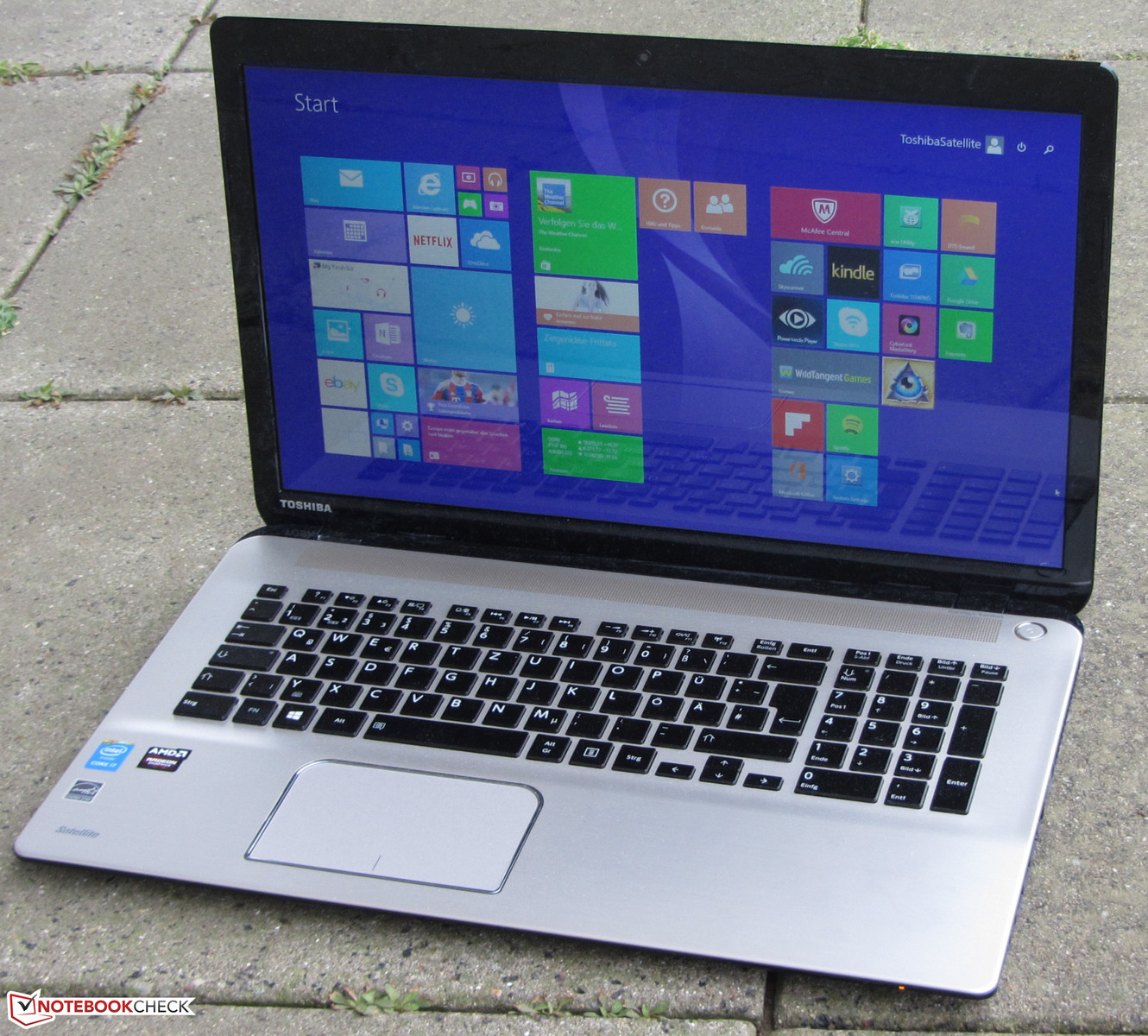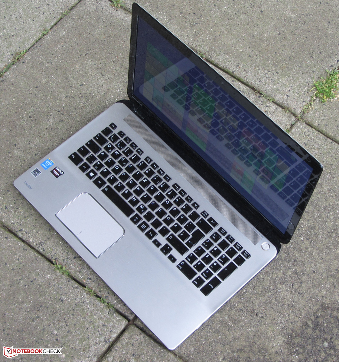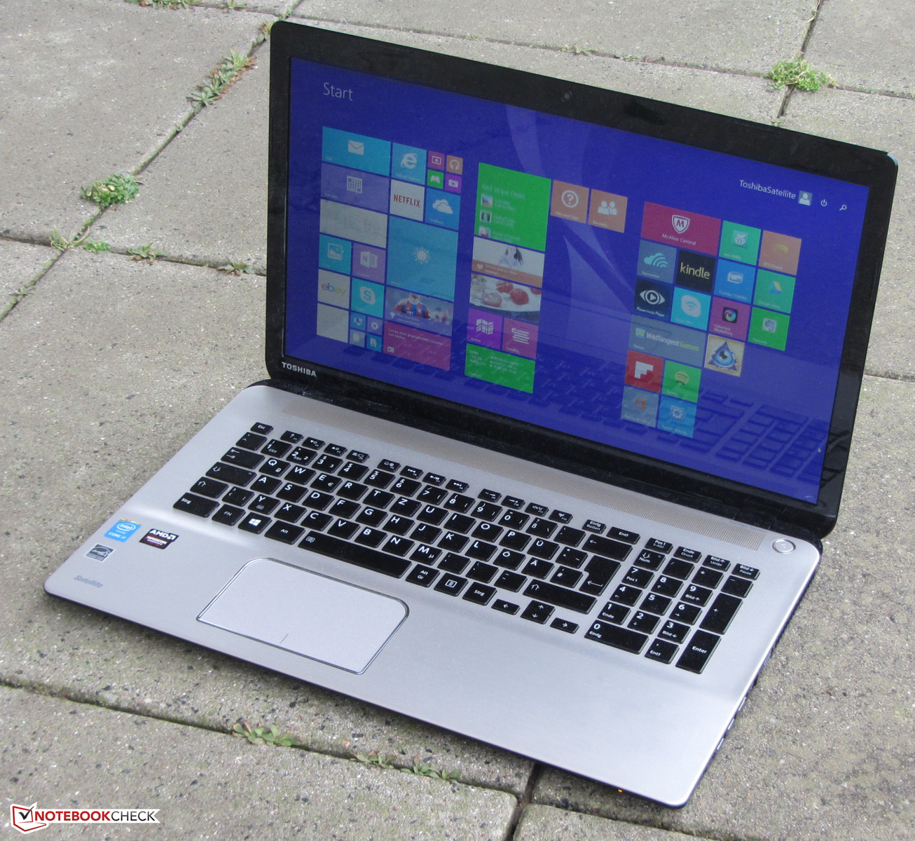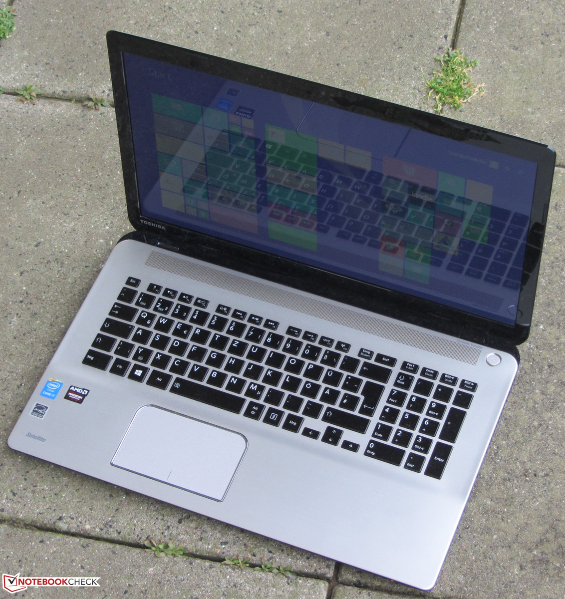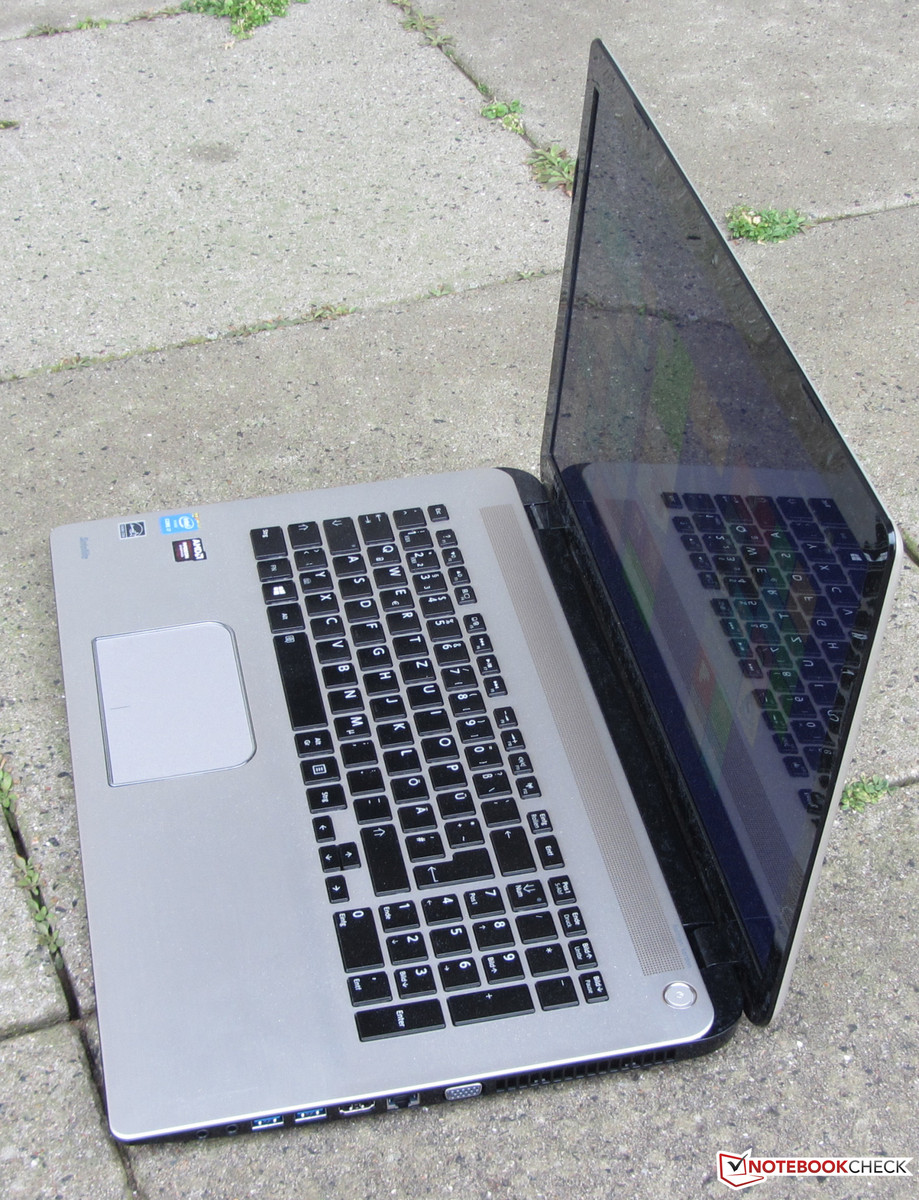 Das Gehäuse enttäuscht ein wenig, denn bei einem 1.200-Euro-Gerät erwarten wir ein hochwertigeres, besser verarbeitetes Gehäuse. Hier zeigt Asus mit dem N751JK-T4144H wie es sein sollte. Auch dem Bildschirm gebührt Kritik. Toshiba setzt hier nur ein TN-Modell ein. Ein blickwinkelstabiles IPS-Panel wäre auch hier Pflicht gewesen. Fairerweise muss gesagt werden, dass auch beim Asus N751JK-T4144H und beim HP Envy 17-k104ng TN-Panel zum Einsatz kommen. Vermutlich sind IPS-Panel im 17,3-Zoll-Format nur schwer zu bekommen. Allerdings hätte Toshiba zumindest ein Modell mit matter Oberfläche einsetzen können. Auch hätten wir zusätzlich zu herkömmlichen Festplatte eine Solid State erwartet, die als Systemlaufwerk dient. Schließlich ist die Kombination schon bei günstigeren Notebooks vorzufinden.
