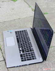 In Sachen Stabilität hinterlässt die Baseunit grundsätzlich einen guten Eindruck. Auf Druck gibt lediglich der Bereich oberhalb des optischen Laufwerks etwas nach. Die Verwindungssteifigkeit der Baseunit geht in Ordnung. Der Deckel hingegen kann für unseren Geschmack etwas zu leicht verdreht werden. Positiv ist allerdings die Tatsache, dass Druck auf die Deckelrückseite nicht zu Bildveränderungen führt. Die Verarbeitung des Rechners entspricht nicht einem 1.200-Euro-Gerät: So sind an den Seiten des Deckels scharfe Kunststoffkanten zu fühlen - der Displayrahmen ist nicht passgenau gefertigt. Die Scharniere halten den Deckel fest in Position, wippen aber nach. Eine Ein-Hand-Öffnung des Deckels ist möglich.
