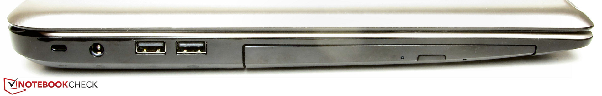 Auf Seiten der Schnittstellen hält das Satellite keine Überraschungen bereit: Es bringt die übliche Auswahl davon mit. Wie das Asus N751JK-T4144H verfügt auch das Satellite über 4 USB-Anschlüsse. Allerdings arbeiten nur zwei der Steckplätze nach dem USB-3.0-Standard. Beim Asus Rechner gilt das für alle vier Steckplätze. Toshiba hat die meisten Anschlüsse im vorderen Bereich der rechten Seite platziert. Somit bleibt der Bereich rechts neben der Handballenablage nicht frei von Kabeln.