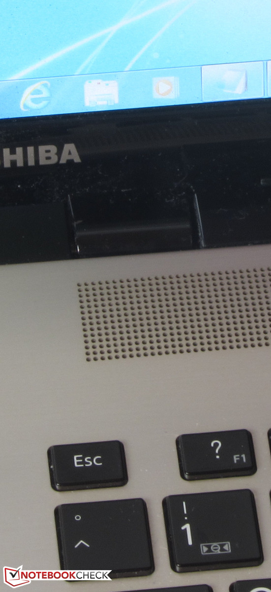 Die Lautsprecher des Satellite haben ihren Platz oberhalb der Tastatur hinter einer gelochten Abdeckung gefunden. Der Aufdruck "harman/kardon" verspricht dem Nutzer ein hochwertiges Klangerlebnis. Und das Versprechen wird auch nicht gebrochen: Die Lautsprecher erzeugen einen angenehmen, voluminösen Klang. Man kann den Lautsprechern auch längere Zeit zuhören. Wird die vorinstallierte DTS Software aktiviert, kann der Klang noch weiter verbessert werden.