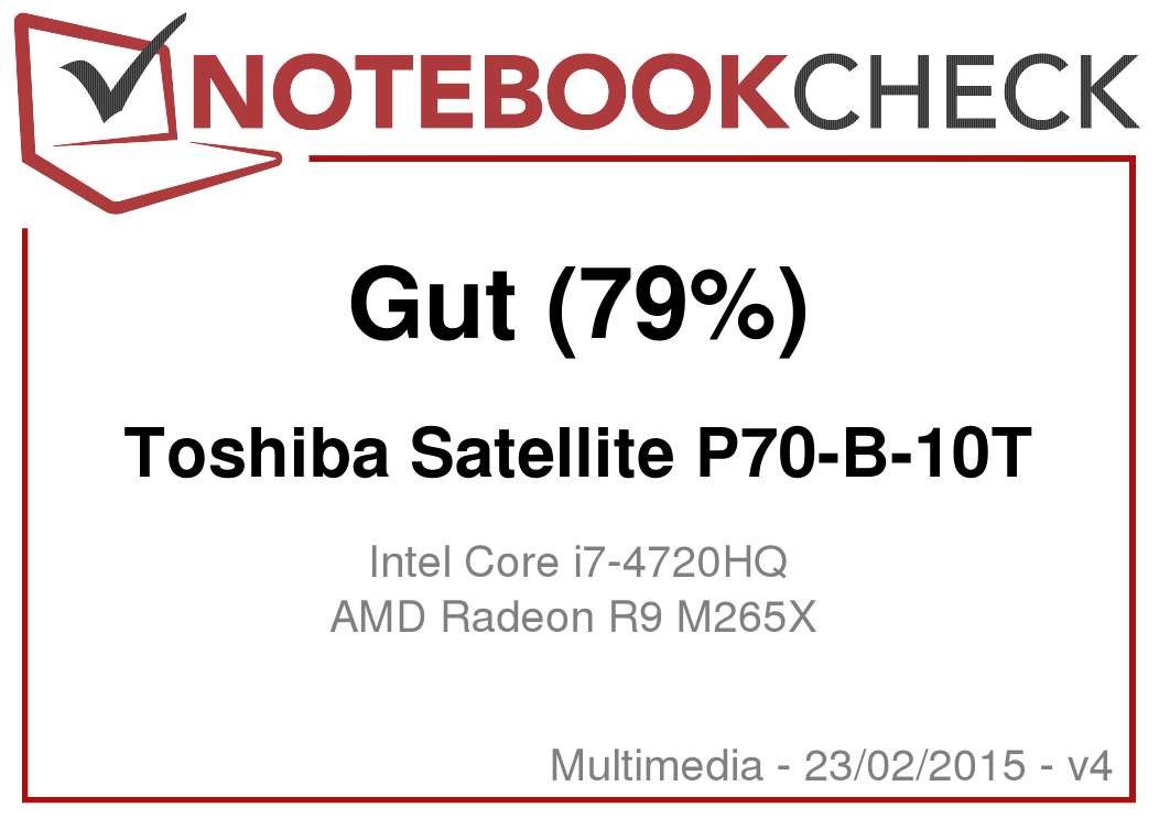 Das Satellite P70-B-10T gehört zu den Allround Notebooks im 17,3-Zoll-Format. Das Gerät verfügt dank dem starken Core-i7-Prozessor über mehr als genug Rechenleistung für die meisten Anwendungsszenarien. Der Radeon Grafikkern ermöglicht das Spielen aktueller Games. Unser Testgerät ist für etwa 1.200 Euro zu haben. Wer leichte Abstriche bei der Hardware (Core i7-4710HQ, 12 GB Arbeitsspeicher, 1 TB Festplatte) hinnimmt, bekommt den Rechner bereits ab etwa 960 Euro.