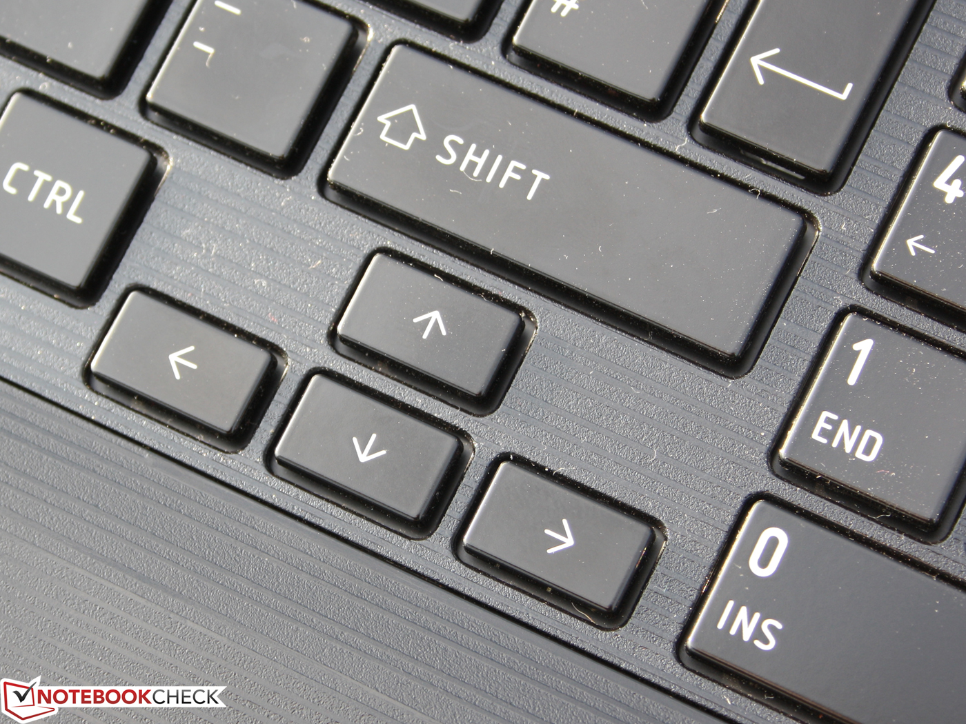 Der numerische Tastenblock im Standard-Layout erleichtert die Eingabe von Zahlen. Gelungen ist die deutliche räumliche Trennung der zwei Bereiche - Tastatur und Ziffernblock. Weiterhin hat Toshiba an abgesetzte Richtungstasten gedacht. Durch den kleinen Zwischenraum zur Shift-Taste werden Fehleingaben minimiert.