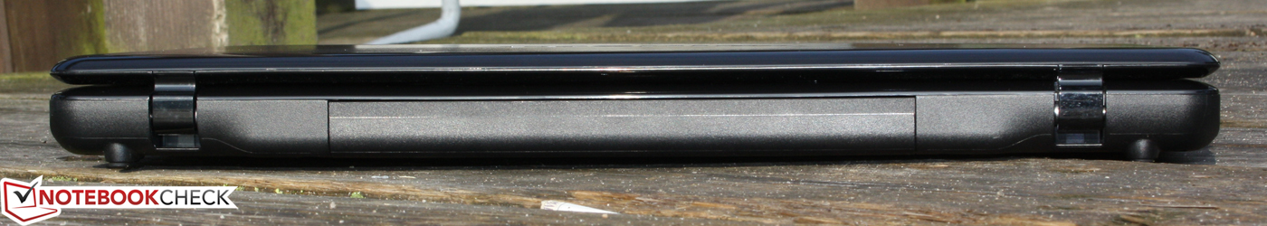 Das Gehäuse hat insgesamt eine ausreichende, allerdings keine gute Druckstabilität. Die Handauflage verbiegt sich rechts und links außen unter dem Druck der Hände. Das optische Laufwerk ist, wie so oft, eine Schwachstelle. Zwar kann der Ziffernblock darüber nicht eingedrückt werden, wohl aber die darunter liegende Bodenplatte.