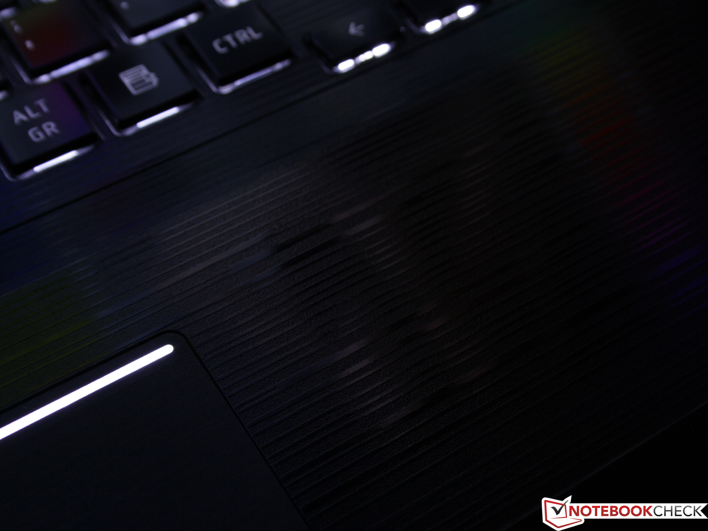 Die rundlichen und nach oben gewölbten Tasten haben einen hohen Druckpunkt und klicken laut und dumpf. Der Hub ist leider zu klein und daher unbefriedigend. Das laute Feedback wird schnell lästig und lässt nach einer externen Maus suchen. Der LED-Indikator im obersten Bereich des Touchpads weist dem suchenden Finger den Weg, denn zur Handauflage hin gibt es keinen Steg. Mit der Taste über dem Pad wird selbiges abgeschalten, dann leuchtet die LED nicht mehr.