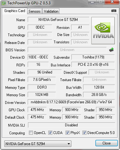 Die Nvidia GeForce GT 525M (1024 MB DDR3) ist dedizierte Mittelklasse Grafikkarte auf Basis des GF108 Kerns. Mit einer 128 Bit Anbindung des Grafikspeichers ist sie den Einsteiger-GPUs (z. B. GT 520M, 64 Bit) überlegen. Die Leistung der DirectX-11 GPU liegt leicht unterhalb einer Radeon HD 6550 bzw. HD 6650 (+5% für Radeon). Einige Games wie StarCraft 2 laufen jedoch auf der Radeon-Konkurrenz auch mal 16% langsamer.