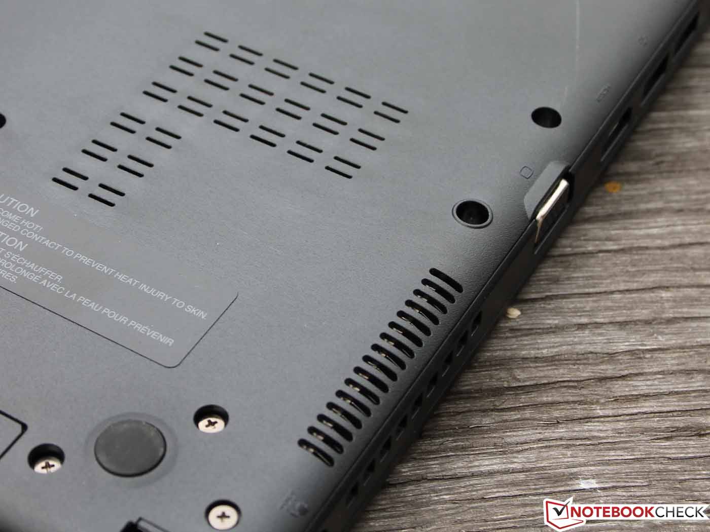 Bei hoher, konstanter Last erkennen wir eine deutliche Erwärmung, allerdings nur punktuell in Nachbarschaft des Luftauslasses (40 bzw. 48 Grad, Oben/Unten). Dieses Maximum ist beim Extensa 2510 oder auch beim TravelMate P455-M teils deutlich niedriger, was aber nicht mit einem signifikant lauteren Lüfter einhergeht.