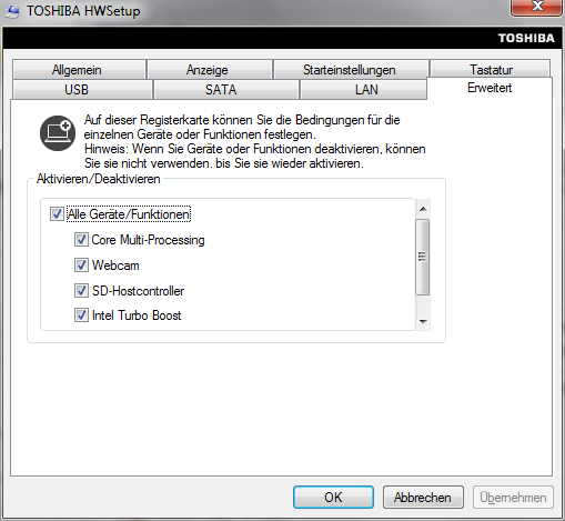 Toshiba hat derzeit kein spezifisches Zubehör für das R50 im Programm. Die Software-Load hingegen gibt sich üppig, wie wir an folgenden Screenshots zeigen. Eine echte kommerzielle Vollversion, wie z. B. Photoshop Elements, ist nicht dabei. Erwähnenswert unter den vielen Tools sind CyberLink PowerDVD, Eco Utility, HWSetup und Recovery Media Creator. Das Kühlleistungs Diagnosetool startet einen längeren Stresstest, unter welchem der Lüfter massiv arbeitet, und wertet die Temperaturen an den Komponenten aus.