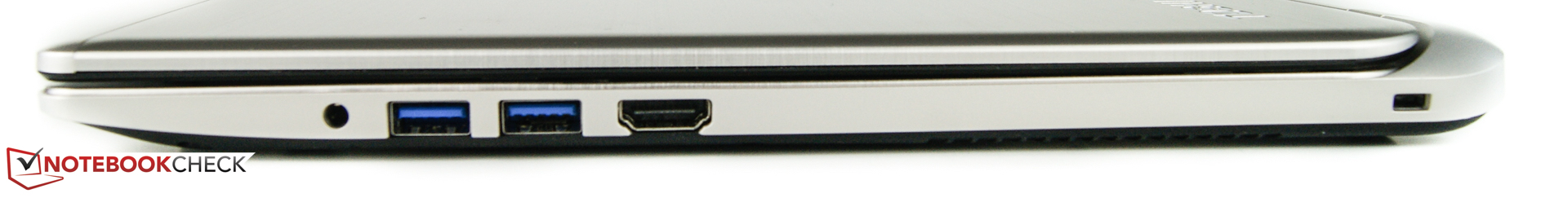 Leider folgen nur zwei der drei USB-Schnittstellen dem 3.0-Standard. Insgesamt fällt der Schnittstellenumfang eher mager aus. Zusätzlich existiert ein Ethernet-Port und ein HDMI-Ausgang, um bereits alle Anschlüsse erwähnt zu haben. Die Positionierungsstrategie ist allerdings recht pfiffig gehandhabt worden. Der Ethernetport und eine USB-Verbindung finden im hinteren Teil der linken Seitenkante ihren Platz, die zum Beispiel durch dauerhaft angeschlossene Geräte genutzt werden können. Einen schnellen Zugriff ermöglichen die im vorderen Bereich eingesetzten restlichen Schnittstellen der rechten Seite.