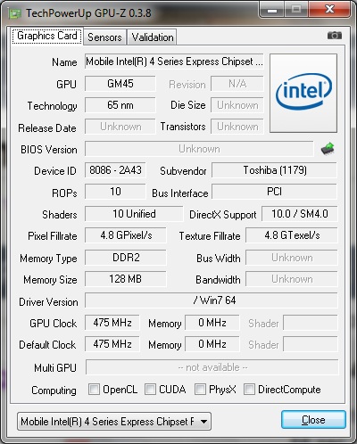 Für Grafikbelange ist modellunabhängig eine Intel GMA 4500M Chipsatzgrafik zuständig. Dabei handelt es technisch gesehen um eine niedriger getaktete GMA 4500M HD, womit die Leistung nicht mehr für den vollen Blu-Ray Support ausreicht. Trotzdem kann der Chip HD Videos dekodieren (jedoch ev. nicht alle 1080p ruckelfrei).