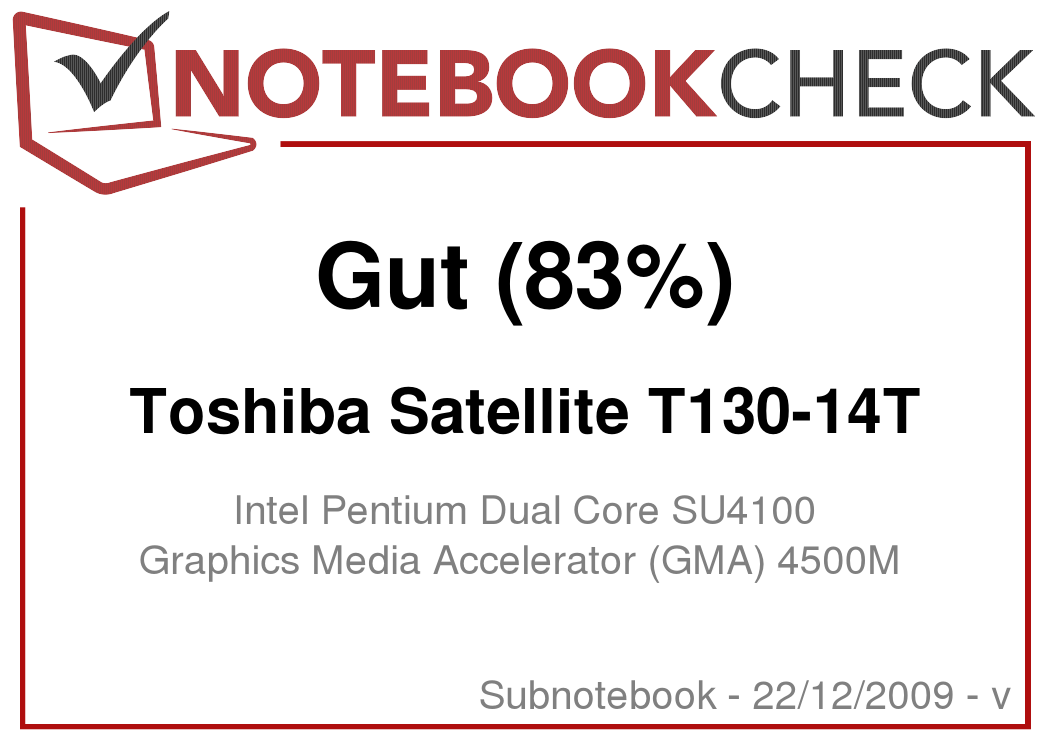 „Noch mobiler, eleganter und deutlich leistungsstärker als jedes Netbook“ - soviel zu den Komparativen mit welchen Toshiba das T130 auf seiner Homepage bewirbt. Schon allein aufgrund seiner 13.3-Zoll Dimension kann dieser Laptop gerade nicht mehr der Netbook-Kategorie zugeordnet werden und spielt eigentlich in der Subnotebook-Liga mit. Der eingebaute Intel Pentium SU4100 Prozessor, vier Gigabyte DDR3 RAM und die Intel GMA 4500 Chipsatzgrafik versprechen nichtsdestotrotz mehr als nur „Netbook-Power“. Mit beworbenen bis zu 10 Stunden Akkulaufzeit sollte im besten Fall auch für ausreichend Mobilität gesorgt sein. Wie sich das Satellite T130 in der Praxis bewährt, zeigt der folgende Testbericht.
