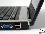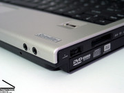 Die Anschlüsse liegen zum Großteil auf der linken und rechten Gehäuseseite. An der Vorderseite findet man lediglich den Firewire Port und die beiden Audio Anschlüsse (Headphones, Mikro). Trotz der Beschränkung der Anschlüsse auf diese beiden Seiten hat man offenbar versucht, eventuelle dauerhaft belegte Ports eher im hinteren Bereich anzubringen. So liegen etwa der Netzanschluss, LAN, 2xUSB und auch der VGA Port an den Seiten ganz im hinteren Bereich. Lediglich die Audio Ports könnten beim Anschluss an eine externe Soundanlage etwas unpassend liegen.