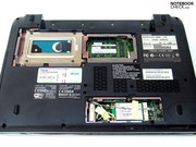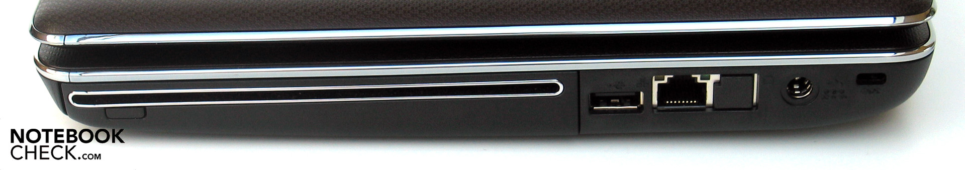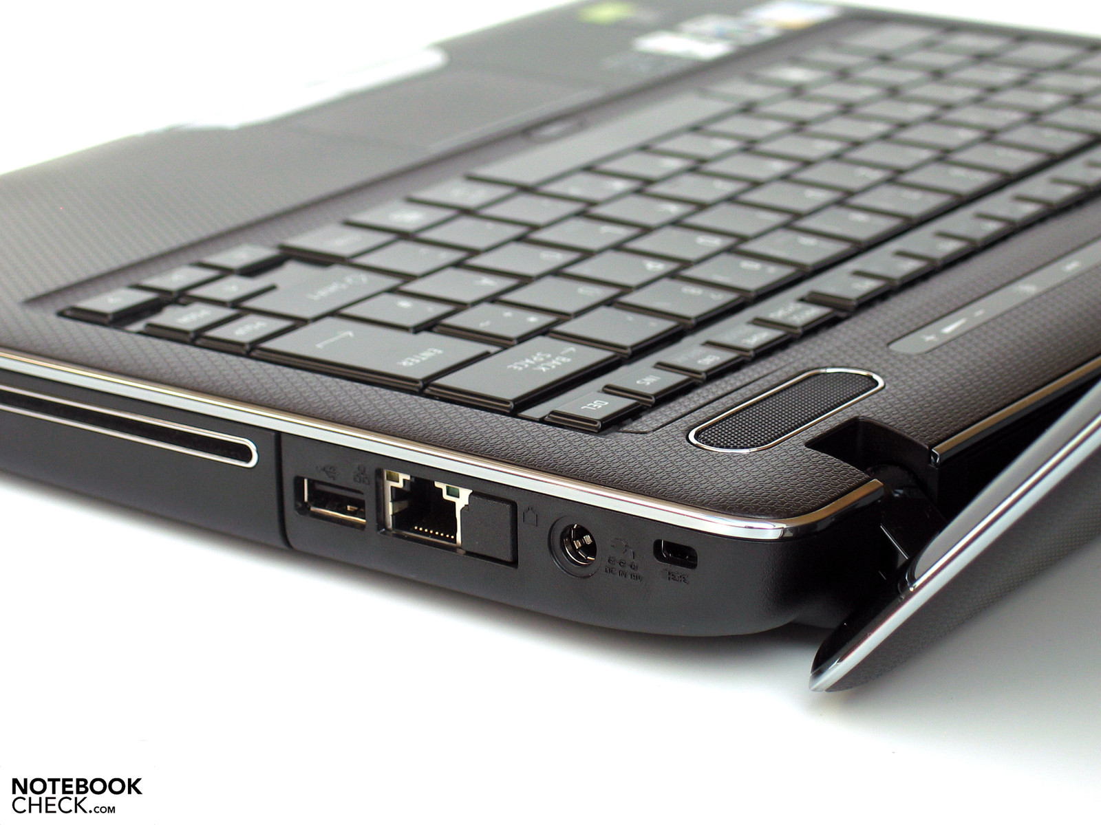 Die gebotenen Anschlussoptionen liegen am Niveau eines gut ausgestatteten 15-Zoll Multimedia Notebooks, allerdings kann die Lage der einzelnen Ports am Notebook je nach geplanter Verwendung etwas störend ausfallen.