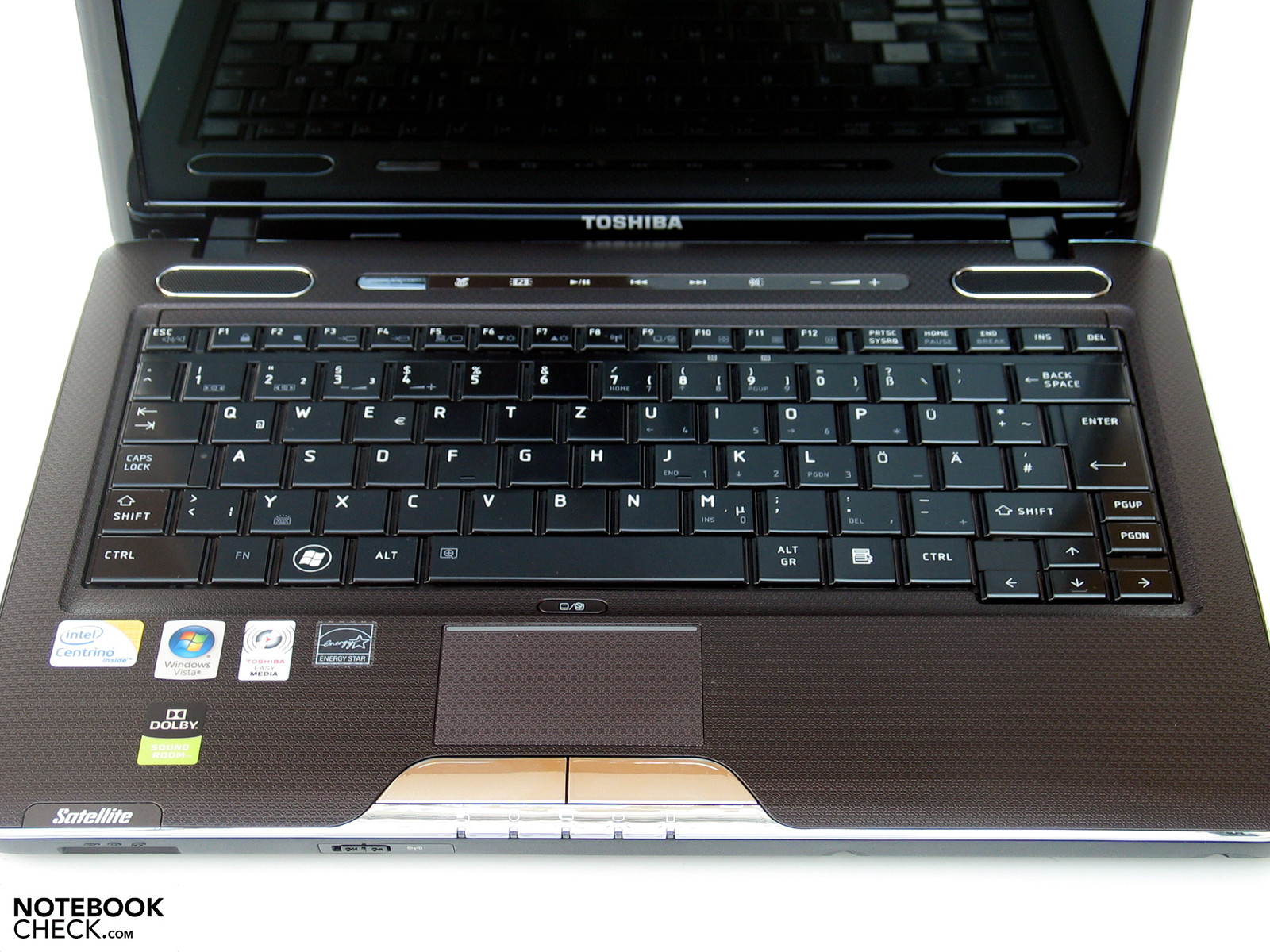 Bei den Eingabegeräten bietet das Notebook eine großzügige Tastatur die für Vielschreiber aufgrund des kurzen Hubweges durchaus von Interesse sein könnte. Die lackierte Oberfläche als auch ein beobachtetes Federn der Tastatur ist allerdings etwas gewöhnungsbedürftig.