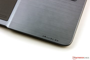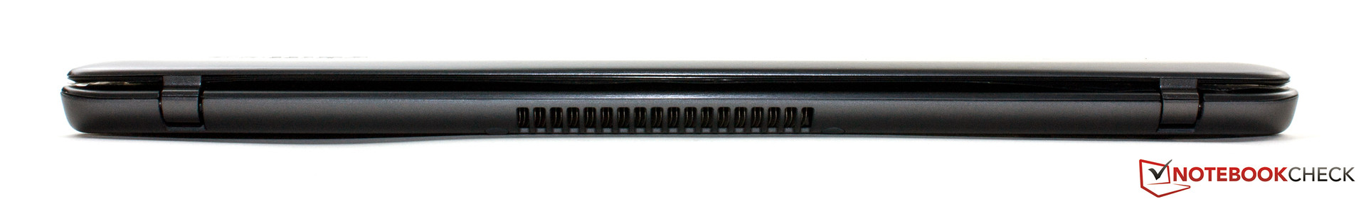 Die beiden Display-Scharniere halten den Touchscreen zuverlässig in der gewünschten Position. Bei Untergrunderschütterungen schwingt das Panel jedoch leicht nach. Erfreulich ist, dass das Ultrabook seine Abwärme nach hinten herausbläst. Der Akku ist jedoch fest verbaut und lässt sich nicht ohne Weiteres austauschen. Dennoch hinterlässt das Testgerät in puncto Verarbeitung einen guten Eindruck.