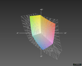 Die Farbkalibrierung kann leider weniger überzeugen. Die Graustufen weisen mit einem durchschnittlichen DeltaE von 10 deutliche Abweichungen auf. Ebenfalls ist ein klarer Blaustich zu erkennen, der den Bildschirminhalt recht kühl wirken lässt. Dies wird auch von der eher mäßig kalibrierten Farbsättigung bestätigt, bei der Blau ein deutlicher Ausreißer (dE 20) ist. Auch die Abdeckung der Farbräume (sRGB: 51 %, Adobe RGB: 36 %) lässt an einen Einsatz für professionelle Bildbearbeitung oder Präsentation nicht mal denken.