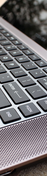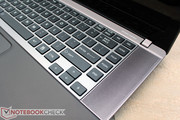 Nicht nur am Gehäuse ist das Breitbildformat des Notebooks gut zu erkennen, auch bei der Tastatur ist dies spürbar. In diesem Punkt ist grundsätzlich Vorsicht geboten, da hier Form und Funktion auf keinen Fall zu Lasten letzteren zusammengebracht werden sollten. Fakt ist, dass die einzelnen Tasten mit Abmessungen von 15x13 Millimetern etwas schmaler ausfallen als bei Chiclet-Tastaturen üblich. Optisch wirkt die Tastatur damit sehr stimmig und fügt sich formschön in das Gehäuse ein.