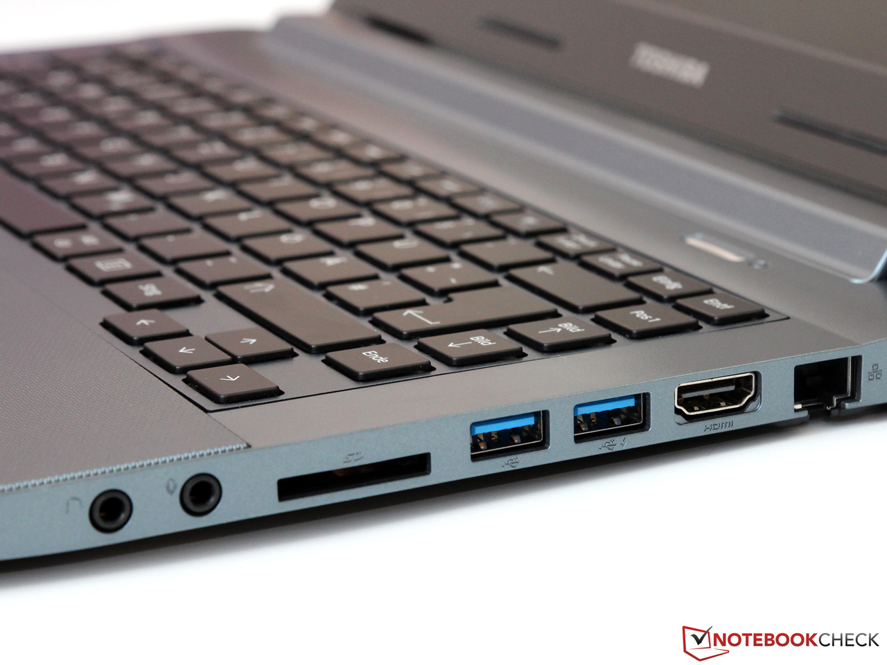 Die meisten Anschlüsse wurden vom Hersteller an der rechten Gehäuseseite platziert, was Rechtshändern eine möglichst unauffällige Kabelführung erschwert. Häufig genutzte Schnittstellen wie die Audiobuchsen oder der Kartenleser wurden weit nach vorn verlagert und sind so besonders leicht erreichbar.
