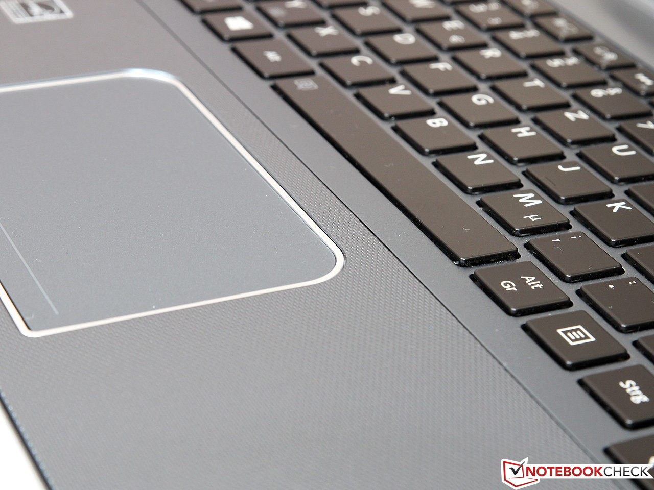 Das 10 x 6,5 Zentimeter große Touchpad stammt von Synaptics und unterstützt eine Vielzahl verschiedener Multitouch-Gesten mit bis zu vier Fingern. Die glatte Oberfläche bietet ausgezeichnete Gleiteigenschaften und setzt Benutzereingaben exakt und verzögerungsfrei um. Wer sich beim Tippen über ungewollte Mausbewegungen oder -klicks ärgert, kann das Touchpad per Tastendruck (F5-Taste) auch komplett deaktivieren.
