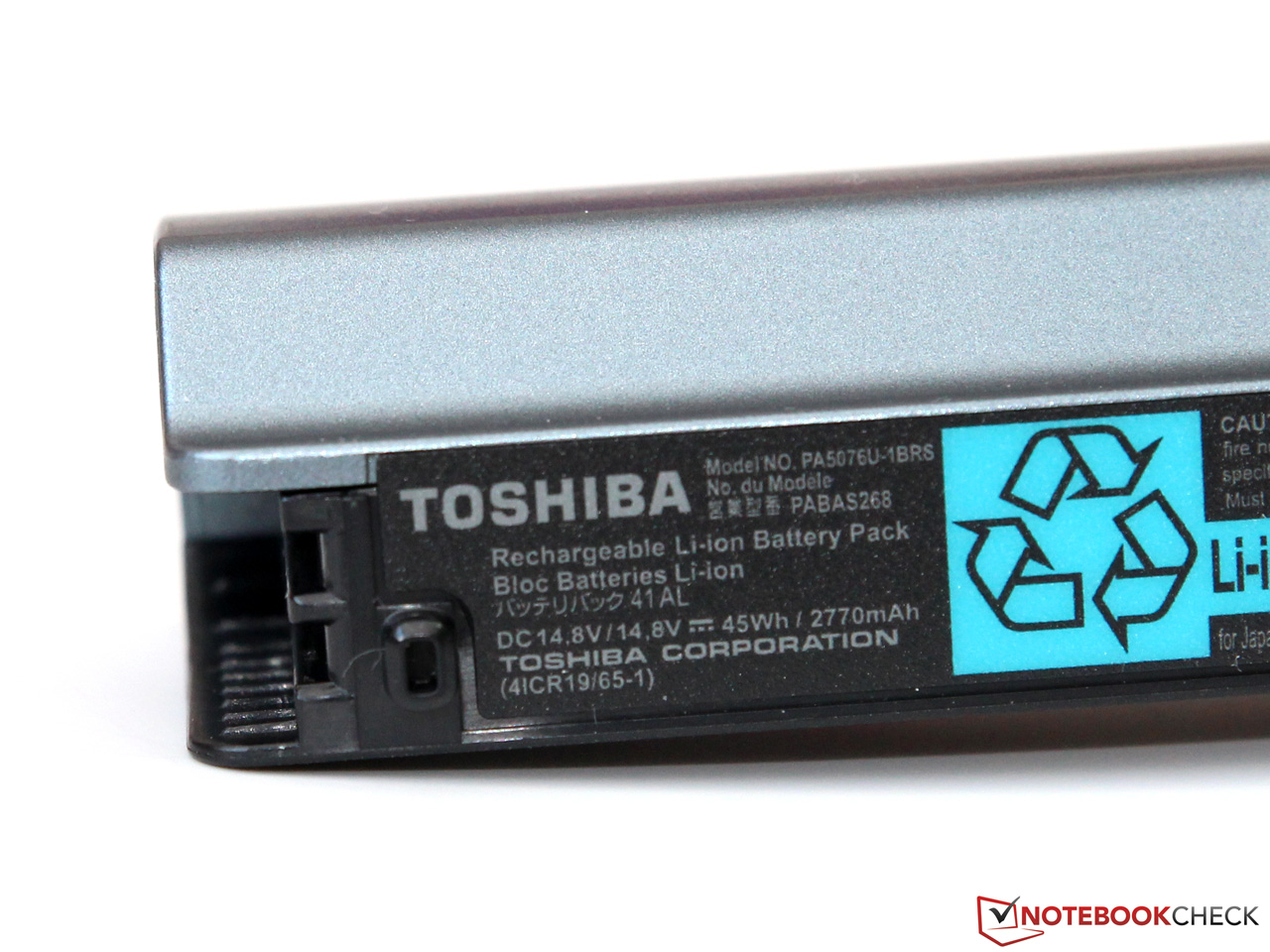 Mit Hilfe seines 45 Wh großen Li-Ion-Akkus soll das U940 laut Toshiba Laufzeiten von bis zu 4,5 Stunden erreichen, wobei dieser Wert nicht im Leerlauf, sondern im Mobile Mark 2012 ermittelt wurde.