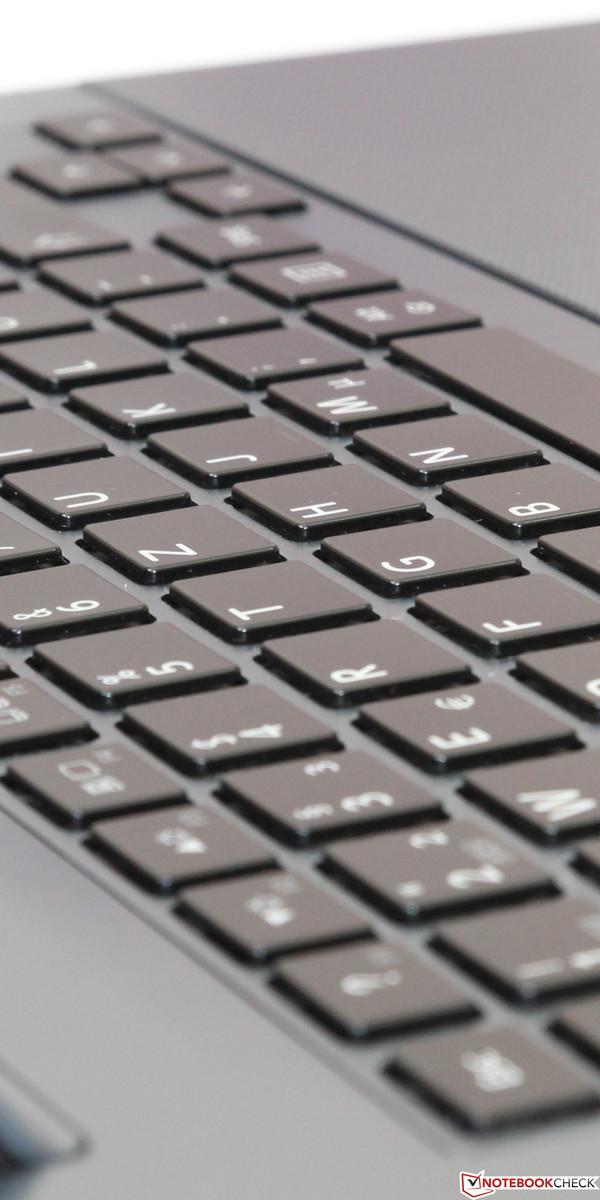 In unserem Praxistest mussten wir uns zunächst an den extrem kurzen Tastenhub gewöhnen, der nicht bei jedem Anwender auf Gegenliebe stoßen dürfte. In Verbindung mit dem schwammigen Druckpunkt ergibt sich so ein recht undifferenziertes Schreibgefühl, welches ein präzises Feedback vermissen lässt. Über diesen Mangel sowie die verbesserungswürdige Stabilität kann auch die angenehm niedrige Geräuschkulisse nicht hinwegtrösten – die ähnlich teuren Kontrahenten von Dell und Lenovo haben hier die Nase vorn.