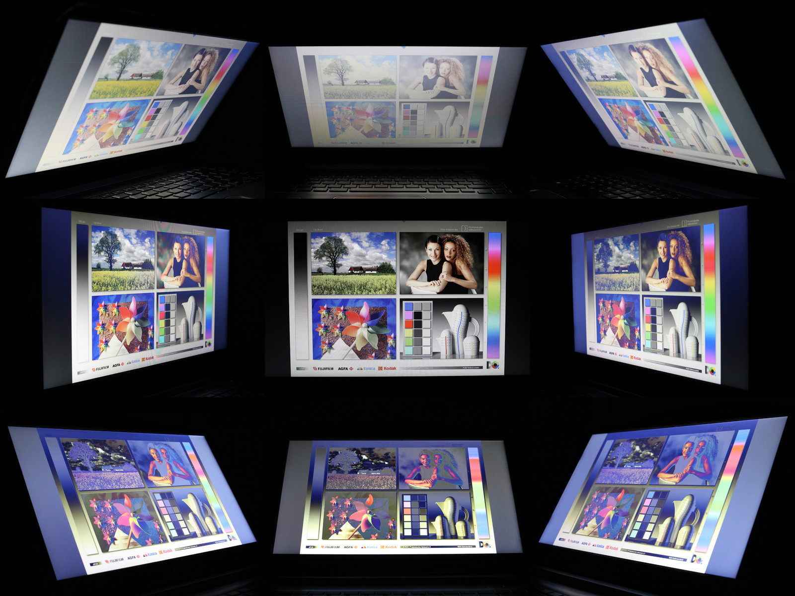 Die TN-typisch hohe Blickwinkelabhängigkeit lässt sich auch beim U940 beobachten und führt dazu, dass der Bildinhalt insbesondere beim Blick von oben oder unten stark verfälscht wird. Seitliche Abweichungen toleriert das Display dagegen bis zu einem Winkel von etwa 30 Grad recht gut, bei noch schrägerer Betrachtung verschlechtert sich aber auch hier die Bildqualität rapide.