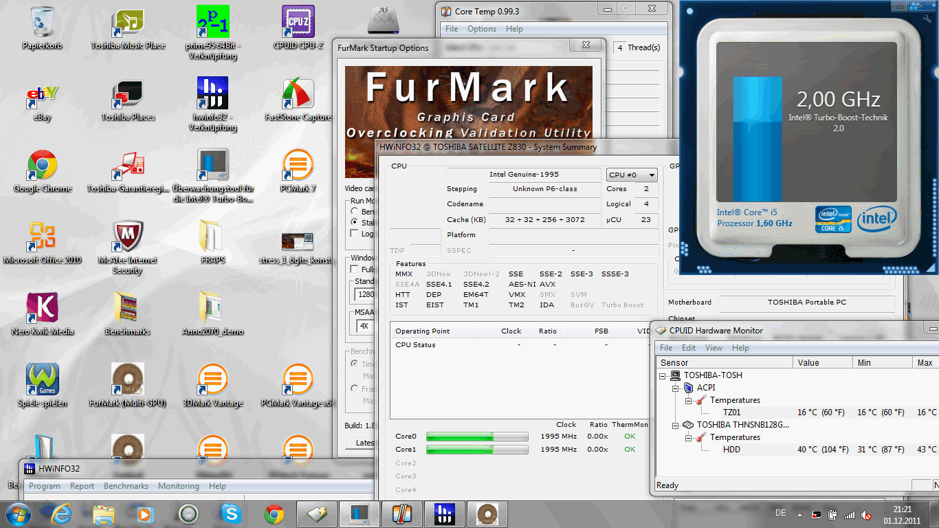 Die Performance mit Toshiba 128 GB SSD und Intel Core i5 2467M (1.6 GHz) gefällt uns gut, insbesondere weil die Leistung zu keiner Zeit drosselt (Thermal Throttling) und sogar im Akkubetrieb voll ausfährt (nicht die GPU-Leistung).