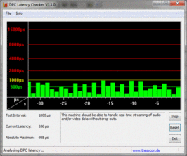 Beim Test der DPC Latenzen mittels des DPC Latency Checker Tools zeigte das A11 immer wieder hohe Spitzen (bis zu 10000 Microsekunden) welche zu Problemen bei externen Soundkarten oder Videoequipment führen kann.