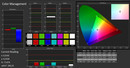 Ohne eine Kalibrierung des Displays liegt die Farbabweichung mit einem durchschnittlichen DeltaE-Wert von 5,58 im durchschnittlichen bis guten Bereich. Ausreisser gibt es dabei vor allem bei den rot-gelb-orangenen Farben, wobei hier eine Abweichung von bis zu 10,59 (DeltaE) erreicht wird. Die Graustufen verhalten sich, mit einer Abweichung von 5,63, analog.