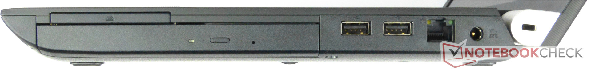 Alle klobigeren Anschlüsse wurden ebenfalls auf dieser Seite platziert, um Rechtshändern bei der Nutzung einer externen Maus möglichst viel Platz zur Verfügung zu stellen.