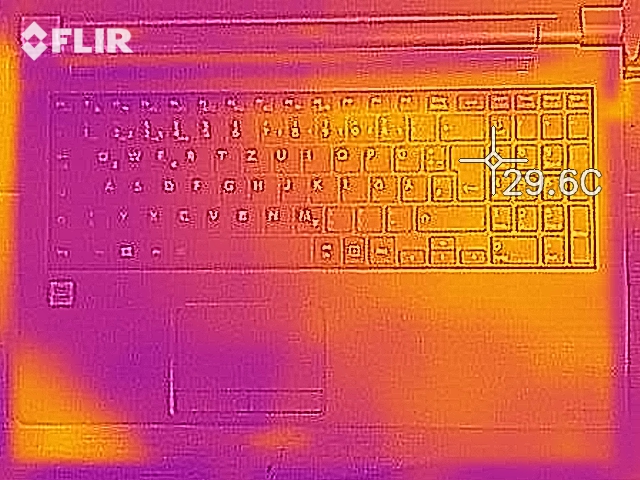 (+) Die Handballen und der Touchpad-Bereich sind mit gemessenen 27.5 °C kühler als die typische Hauttemperatur und fühlen sich dadurch kühl an.