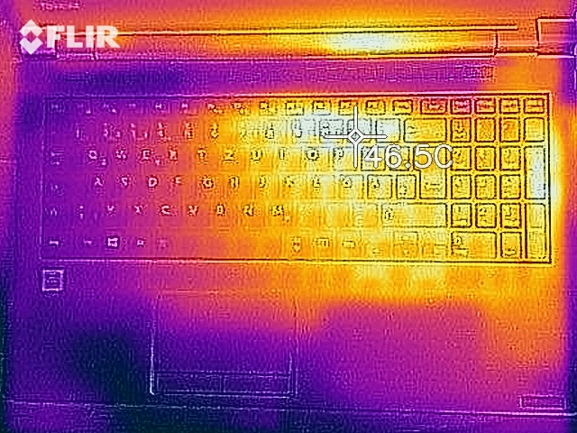 Die Oberflächentemperaturen des Toshiba Tecra A50 bleiben im Leerlauf stets unter 30 °C und steigen unter Last auf maximal 42 °C an. Dadurch kann das Notebook immer verwendet werden und wird nicht zu heiß, wenn es beispielsweise auf den Oberschenkeln steht. Im Inneren des Toshiba-Notebooks steigen die Kerntemperaturen der CPU auf bis zu 62 °C an. Der Basistakt wird dabei kurzzeitig unterschritten, pegelt sich aber im Laufe des Tests wieder auf 1,6 GHz ein.