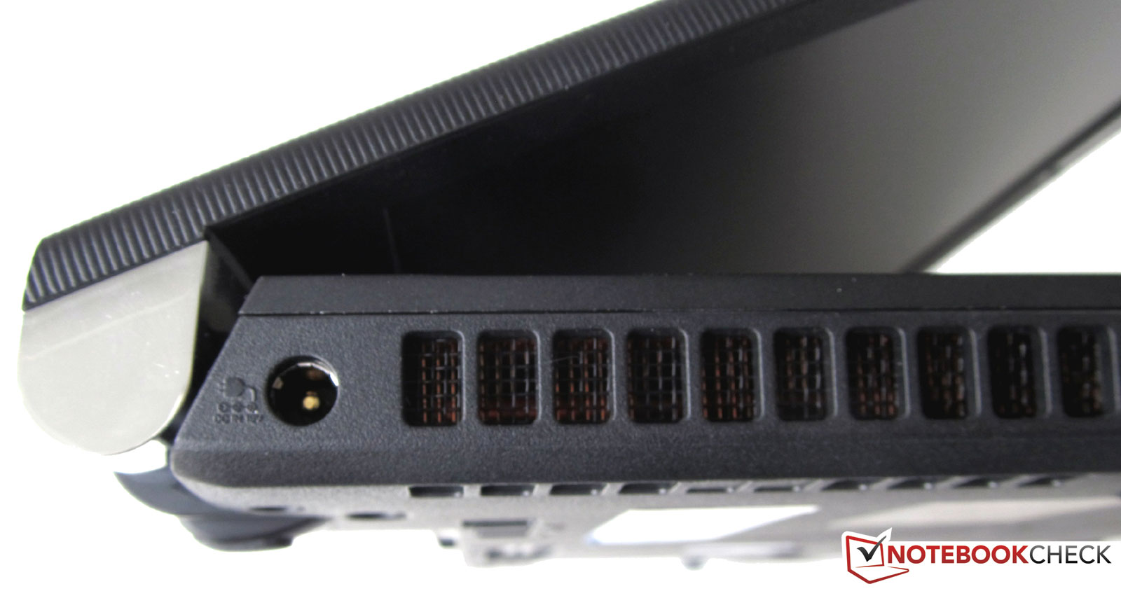 Die beiden Displayscharniere haben eine auf Hochglanz polierte Abdeckung, die für einen guten Kontrast zum ansonsten in Schwarz gehaltenen Chassis sorgt. Die Scharniere greifen gut und halten das Display sicher in jeder Position.