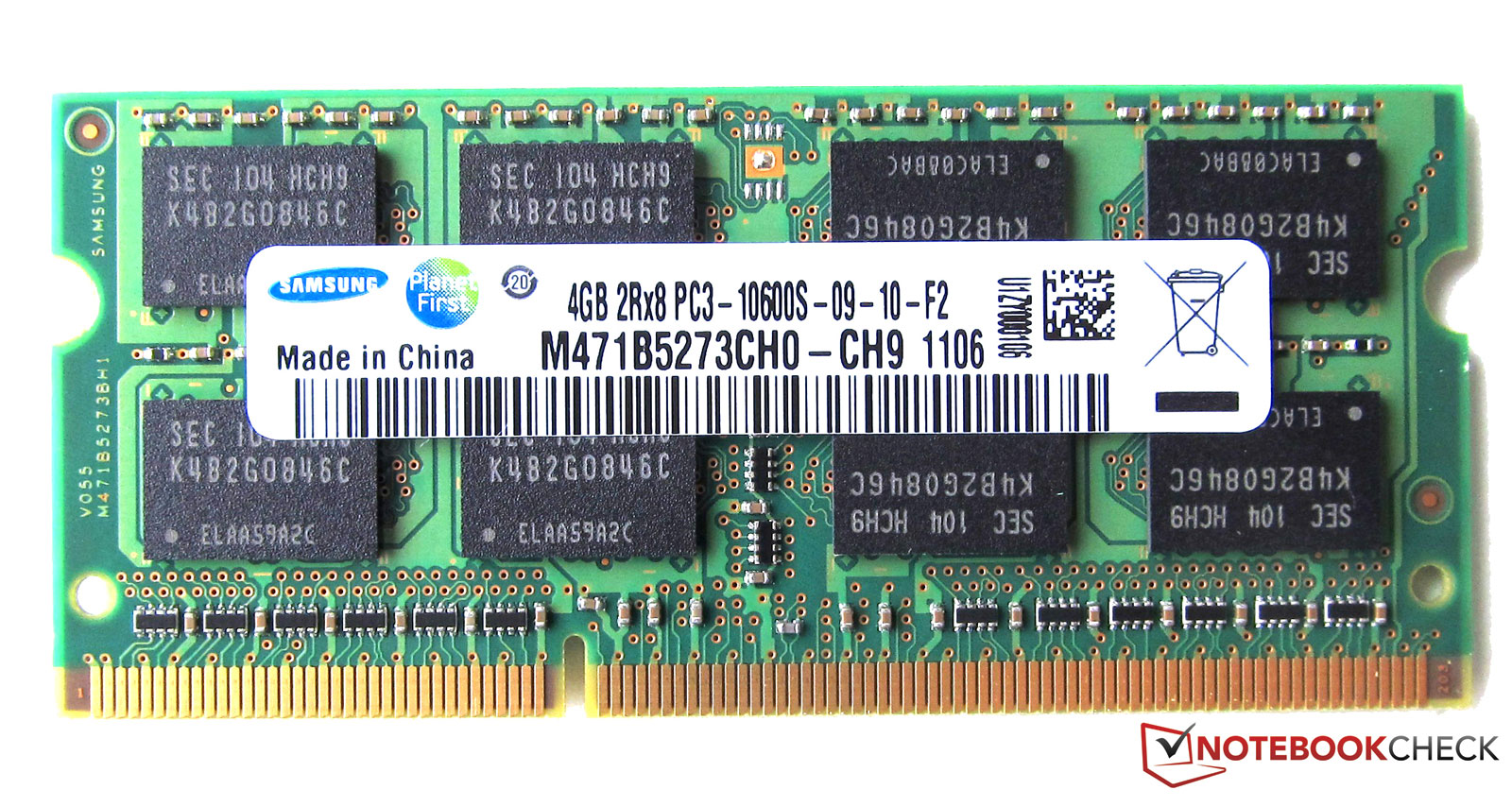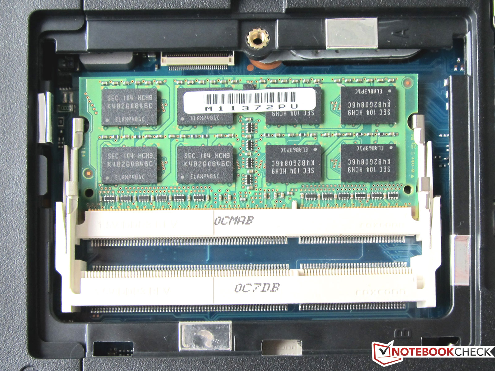 Als Arbeitsspeicher stehen bei diesem Notebook 4 GByte DDR3-Speicher (1333 MHz) zur Verfügung. Über den zweiten freien S0-Slot kann das Notebook bei Bedarf auf bis zu 8 GByte erweitert werden.