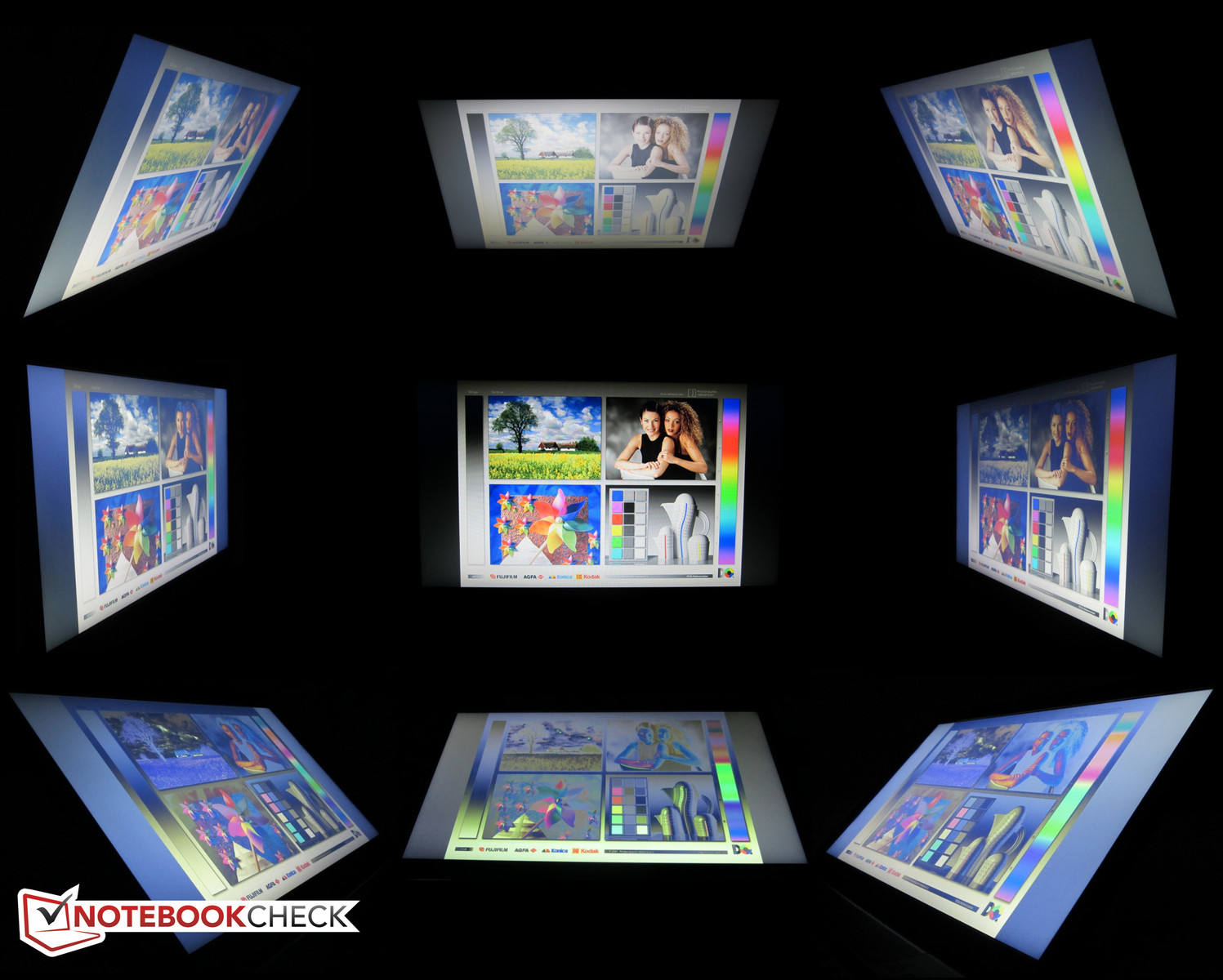 Die Blickwinkel des Tecra R940 lassen zu wünschen übrig. Eine einwandfreie Sicht stellt sich nur dann ein, wenn der Benutzer senkrecht auf den Monitor schaut. Bei seitlichen Einblicken auf horizontaler wie vertikaler Position muss man sich dagegen recht schnell von naturgetreuer Farbdarstellung verabschieden. Bereits bei geringen Abweichungen hellt sich das Bild des Tecra R940 deutlich auf und Inhalte werden stellenweise sogar invertiert dargestellt.
