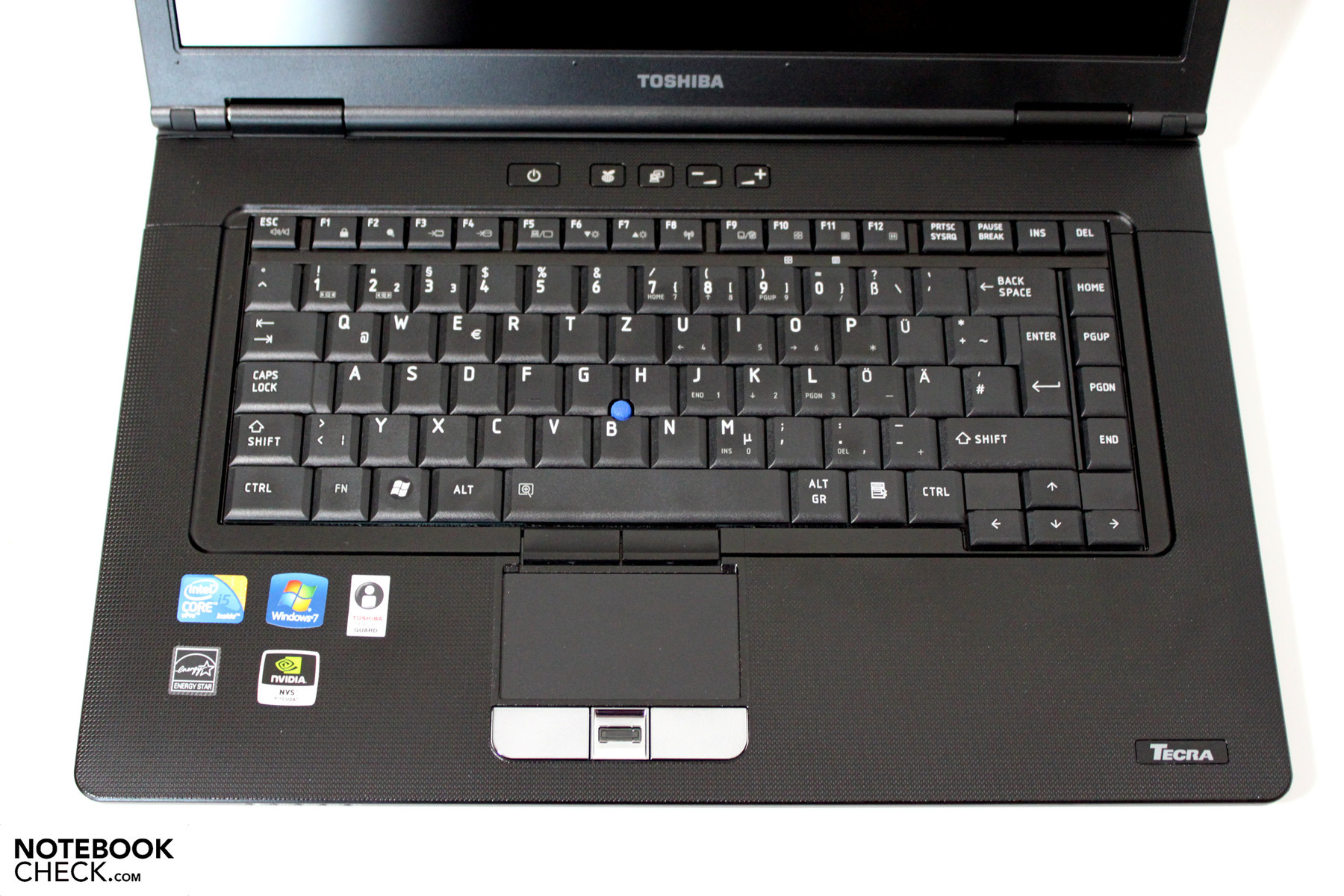 Das Tippgefühl fällt nahezu ident mit jenem des Tecra A11 aus. Auffällig sind der deutliche Druckpunkt und der vergleichsweise lange Hubweg. Bei etwas energischerem Anschlag wird der Finger am Ende des Hubweges sehr hart gestoppt. Dies hängt mit dem festen Sitz der Tastatur im Gehäuse zusammen, die kaum eine nennenswerte Durchbiegung zulässt.