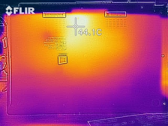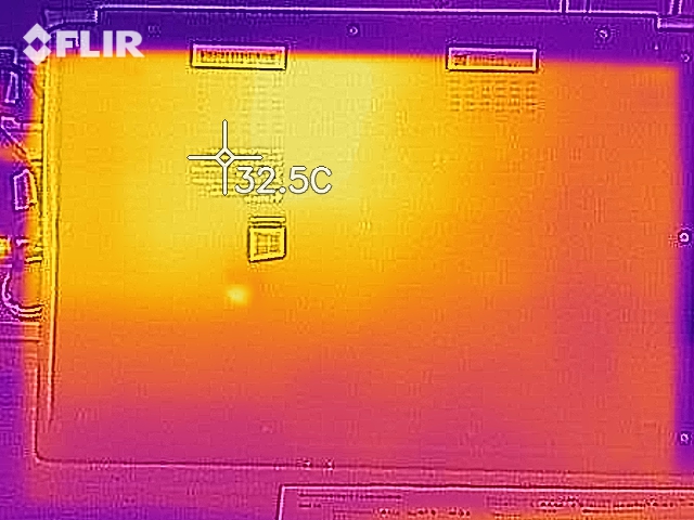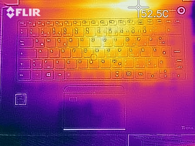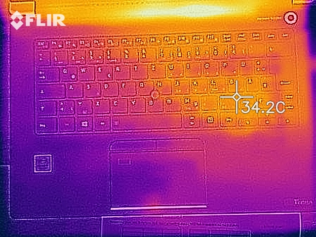 (+) Die Handballen und der Touchpad-Bereich erreichen maximal 34.4 °C und damit die typische Hauttemperatur und fühlen sich daher nicht heiß an.